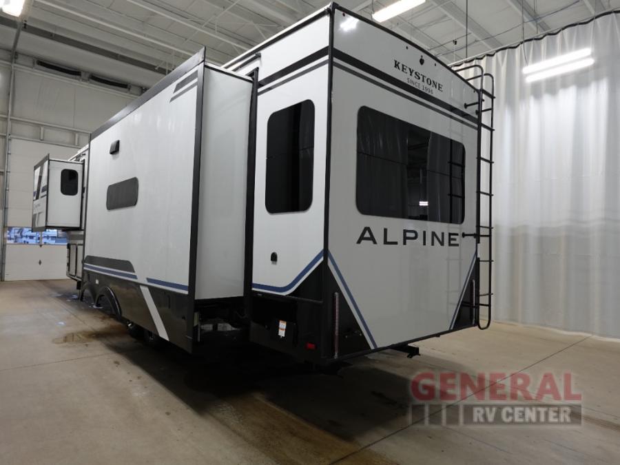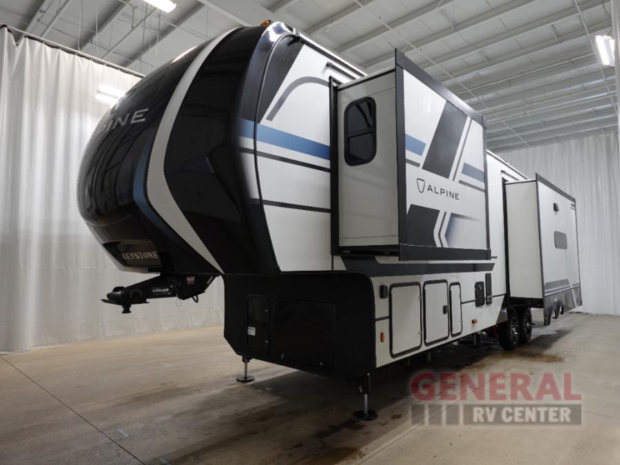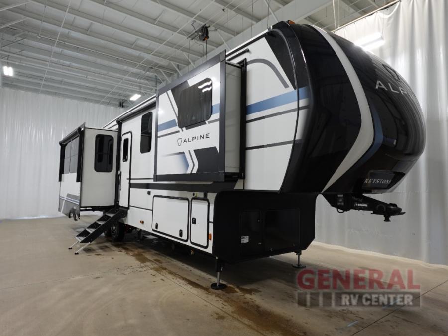 Luxury is not an option, it is a standard with each one of these Keystone RV Alpine fifth wheels! A 8' 4" wide body construction will create an open, residential feeling, and cutting-edge technology will provide a hassle-free camping experience. The Tru-Fit slide construction is more durable and minimizes motor structural stress, as well as resists leaking, and the Blade Pure airflow system provides residential comfort with its high-performance. Each fifth wheel includes designer flooring throughout, stunning solid wood cabinet doors, luxurious crown molding, and solid surface countertops in the kitchen. The exterior also includes an outside shower with hot and cold water, Lippert strut assisted SolidSteps, Hitch Vision with LED lighting, and many more conveniences!