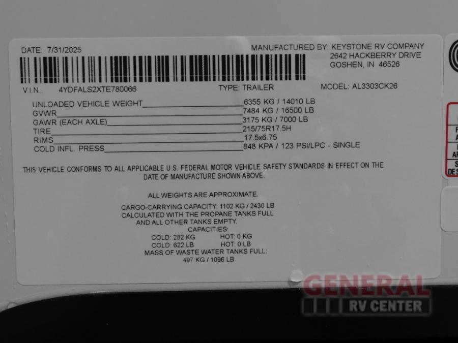 Keystone RV Alpine fifth wheel 3303CK highlights: