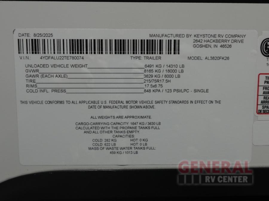Keystone RV Alpine fifth wheel 3820FK highlights: