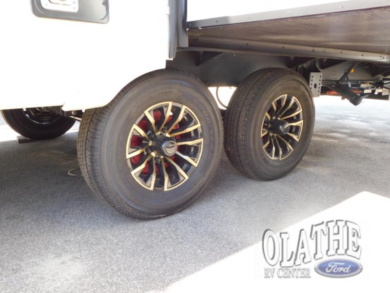 If you're ready for fun summers at the lake, make your adventures complete with this travel trailer in tow. The rear kitchen includes ample counter space to prep burgers, and you can take your preparations outside with the outdoor kitchen prep area. If the weather is nice, you might just want to eat outside too under the 18' power awning, or dine inside at the booth dinette. There is also a tri-fold sleeper sofa within the large slide out and an LED HDTV for movie nights. You'll find plenty of storage throughout, including a kitchen pantry, overhead cabinets, plus dual bedroom nighstands on either side of the king bed!