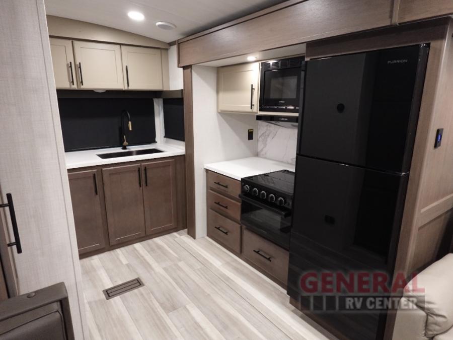 The Keystone Cougar Half-Ton fifth wheel and travel trailers are known as one of America's favorites for a reason! Some of those reasons are the exclusive features that come from Keystone, like the Winegard Air 360+ omni-directional rooftop antenna, the in-floor heating ducts, and the HyperCore composite wall construction with Vixen Fibrogloss high-gloss finish. The Cougar Half-Ton has a Climate Guard protection package with heat-deflecting white sidewalls, two roof attic vents, PEX plumbing and more to enjoy four season camping. Inside, you'll love the dimmable lighting, night roller shades throughout, shower skylight, and bedside USB outlets to keep your electronics charged.