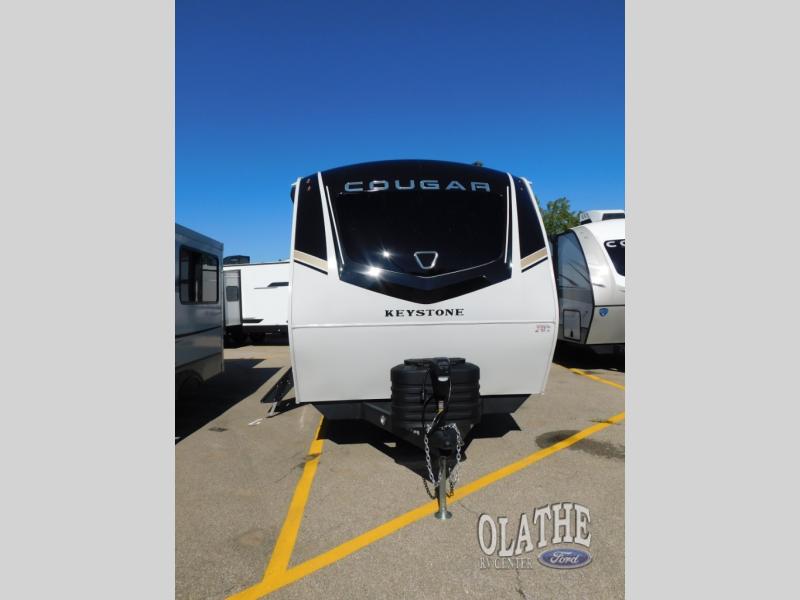 The Keystone Cougar Half-Ton fifth wheel and travel trailers are known as one of America's favorites for a reason! Some of those reasons are the exclusive features that come from Keystone, like the Winegard Air 360+ omni-directional rooftop antenna, the in-floor heating ducts, and the HyperCore composite wall construction with Vixen Fibrogloss high-gloss finish. The Cougar Half-Ton has a Climate Guard protection package with heat-deflecting white sidewalls, two roof attic vents, PEX plumbing and more to enjoy four season camping. Inside, you'll love the dimmable lighting, night roller shades throughout, shower skylight, and bedside USB outlets to keep your electronics charged.