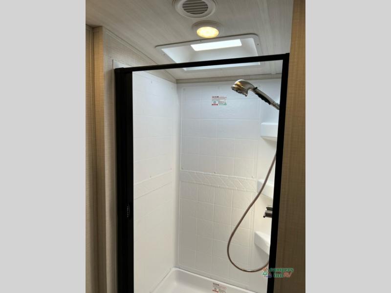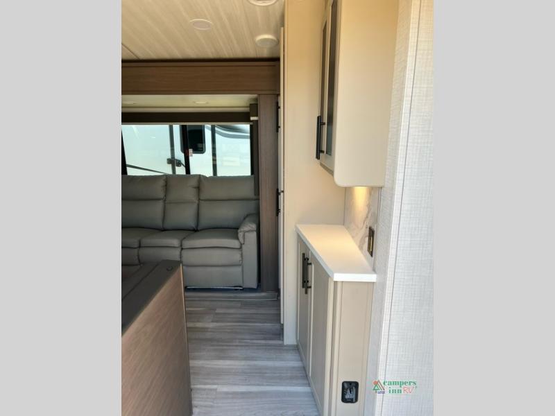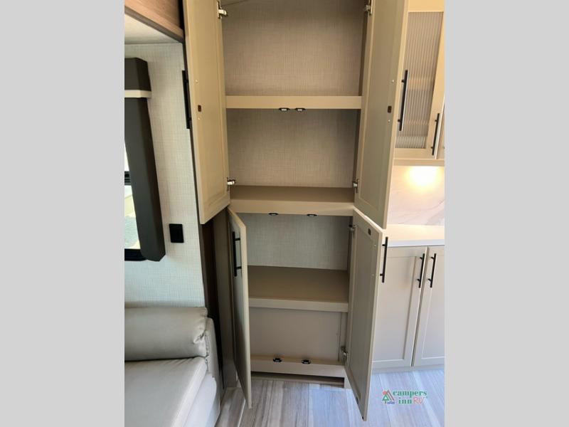 If you're ready for fun summers at the lake, make your adventures complete with this travel trailer in tow. The rear kitchen includes ample counter space to prep burgers, and you can take your preparations outside with the outdoor kitchen prep area. If the weather is nice, you might just want to eat outside too under the 18' power awning, or dine inside at the booth dinette. There is also a tri-fold sleeper sofa within the large slide out and an LED HDTV for movie nights. You'll find plenty of storage throughout, including a kitchen pantry, overhead cabinets, plus dual bedroom nighstands on either side of the king bed!