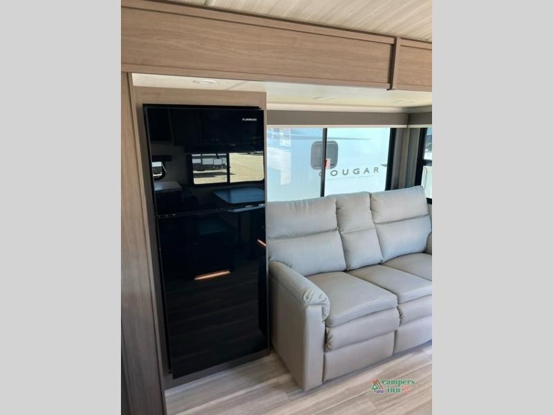 The Keystone Cougar Half-Ton fifth wheel and travel trailers are known as one of America's favorites for a reason! Some of those reasons are the exclusive features that come from Keystone, like the Winegard Air 360+ omni-directional rooftop antenna, the in-floor heating ducts, and the HyperCore composite wall construction with Vixen Fibrogloss high-gloss finish. The Cougar Half-Ton has a Climate Guard protection package with heat-deflecting white sidewalls, two roof attic vents, PEX plumbing and more to enjoy four season camping. Inside, you'll love the dimmable lighting, night roller shades throughout, shower skylight, and bedside USB outlets to keep your electronics charged.