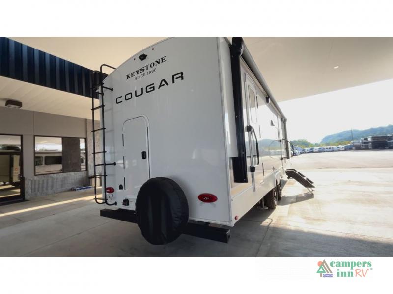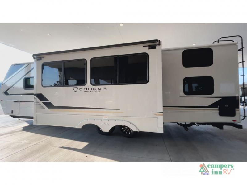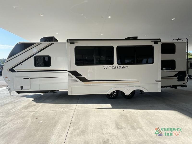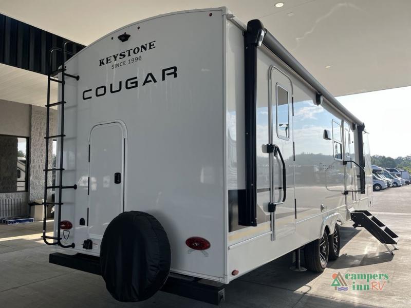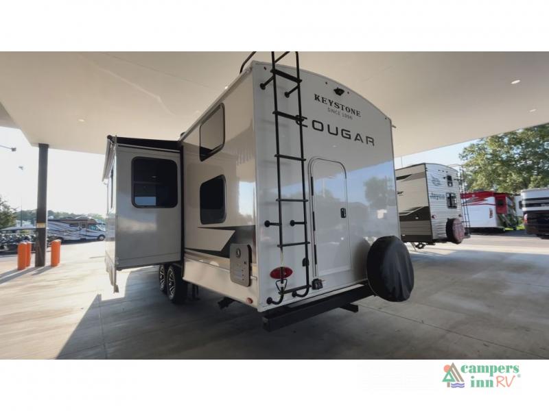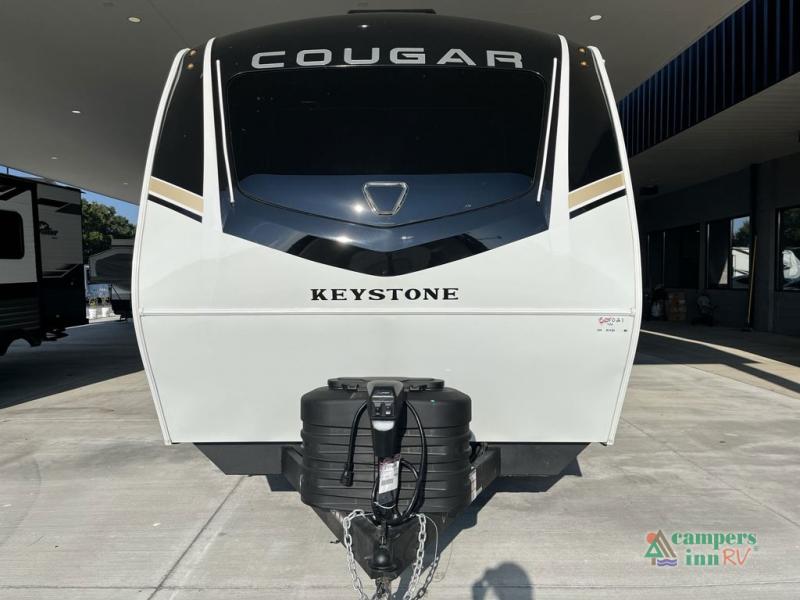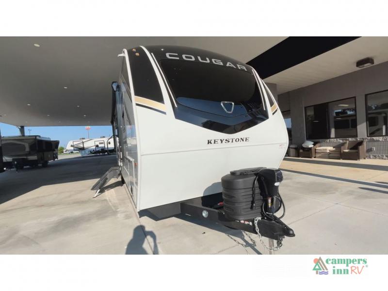 The Keystone Cougar Half-Ton fifth wheel and travel trailers are known as one of America's favorites for a reason! Some of those reasons are the exclusive features that come from Keystone, like the Winegard Air 360+ omni-directional rooftop antenna, the in-floor heating ducts, and the HyperCore composite wall construction with Vixen Fibrogloss high-gloss finish. The Cougar Half-Ton has a Climate Guard protection package with heat-deflecting white sidewalls, two roof attic vents, PEX plumbing and more to enjoy four season camping. Inside, you'll love the dimmable lighting, night roller shades throughout, shower skylight, and bedside USB outlets to keep your electronics charged.
