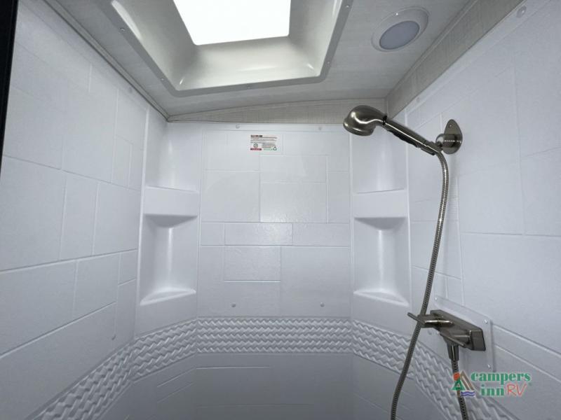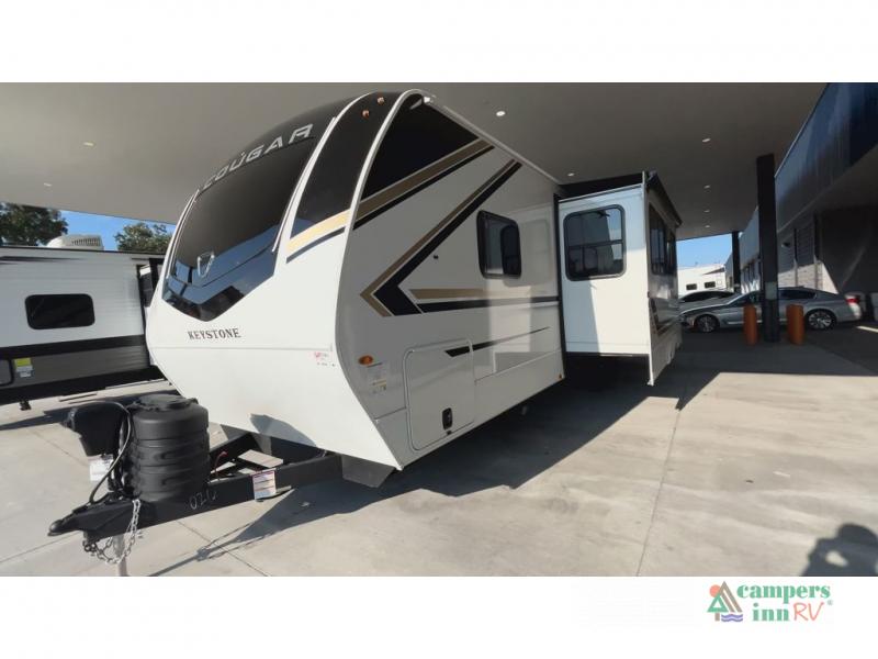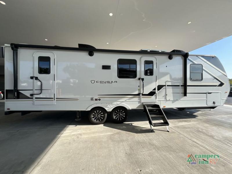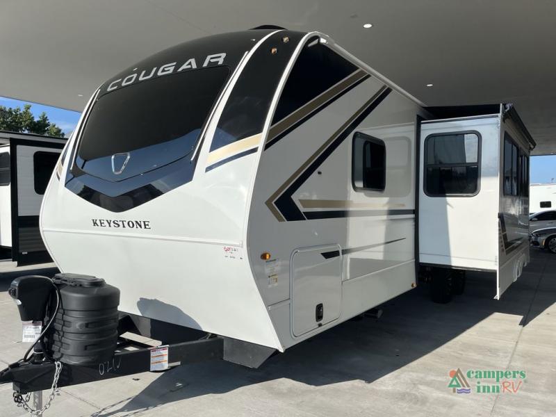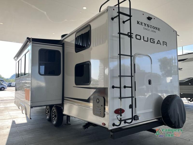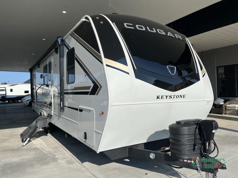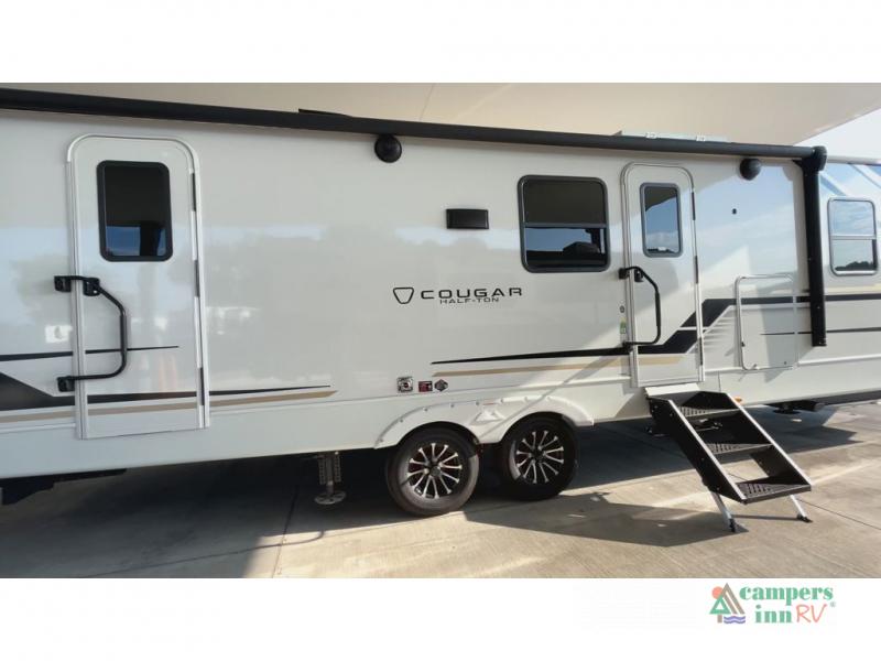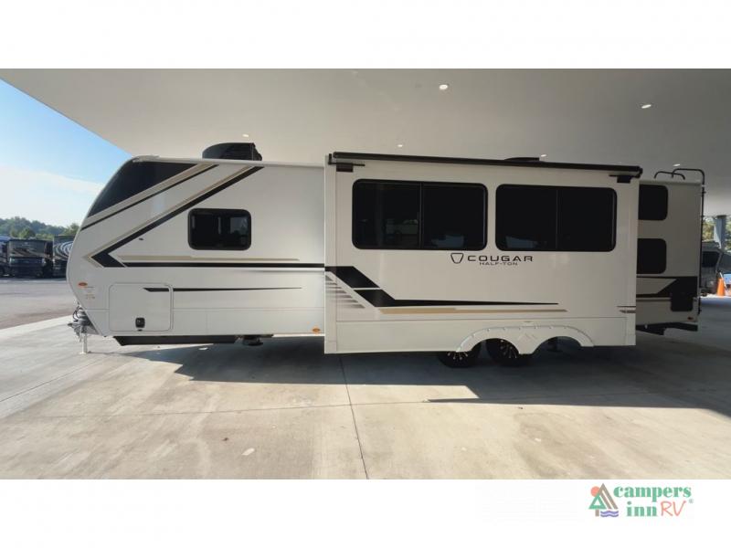 The Keystone Cougar Half-Ton fifth wheel and travel trailers are known as one of America's favorites for a reason! Some of those reasons are the exclusive features that come from Keystone, like the Winegard Air 360+ omni-directional rooftop antenna, the in-floor heating ducts, and the HyperCore composite wall construction with Vixen Fibrogloss high-gloss finish. The Cougar Half-Ton has a Climate Guard protection package with heat-deflecting white sidewalls, two roof attic vents, PEX plumbing and more to enjoy four season camping. Inside, you'll love the dimmable lighting, night roller shades throughout, shower skylight, and bedside USB outlets to keep your electronics charged.