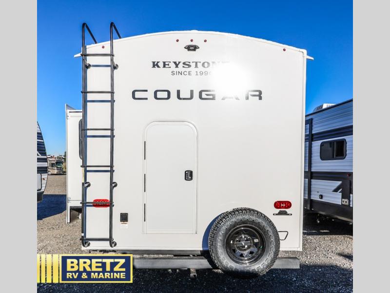The Keystone Cougar Half-Ton fifth wheel and travel trailers are known as one of America's favorites for a reason! Some of those reasons are the exclusive features that come from Keystone, like the Winegard Air 360+ omni-directional rooftop antenna, the in-floor heating ducts, and the HyperCore composite wall construction with Vixen Fibrogloss high-gloss finish. The Cougar Half-Ton has a Climate Guard protection package with heat-deflecting white sidewalls, two roof attic vents, PEX plumbing and more to enjoy four season camping. Inside, you'll love the dimmable lighting, night roller shades throughout, shower skylight, and bedside USB outlets to keep your electronics charged.