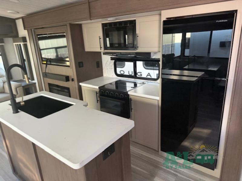 The Keystone Cougar Half-Ton fifth wheel and travel trailers are known as one of America's favorites for a reason! Some of those reasons are the exclusive features that come from Keystone, like the Winegard Air 360+ omni-directional rooftop antenna, the in-floor heating ducts, and the HyperCore composite wall construction with Vixen Fibrogloss high-gloss finish. The Cougar Half-Ton has a Climate Guard protection package with heat-deflecting white sidewalls, two roof attic vents, PEX plumbing and more to enjoy four season camping. Inside, you'll love the dimmable lighting, night roller shades throughout, shower skylight, and bedside USB outlets to keep your electronics charged.
