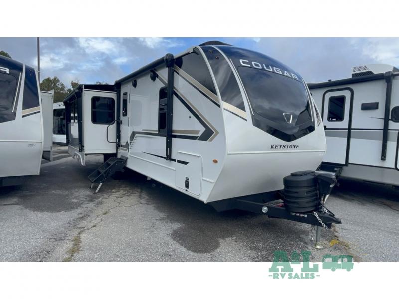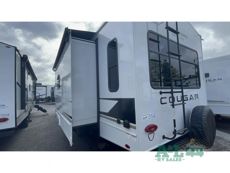 The Keystone Cougar Half-Ton fifth wheel and travel trailers are known as one of America's favorites for a reason! Some of those reasons are the exclusive features that come from Keystone, like the Winegard Air 360+ omni-directional rooftop antenna, the in-floor heating ducts, and the HyperCore composite wall construction with Vixen Fibrogloss high-gloss finish. The Cougar Half-Ton has a Climate Guard protection package with heat-deflecting white sidewalls, two roof attic vents, PEX plumbing and more to enjoy four season camping. Inside, you'll love the dimmable lighting, night roller shades throughout, shower skylight, and bedside USB outlets to keep your electronics charged.