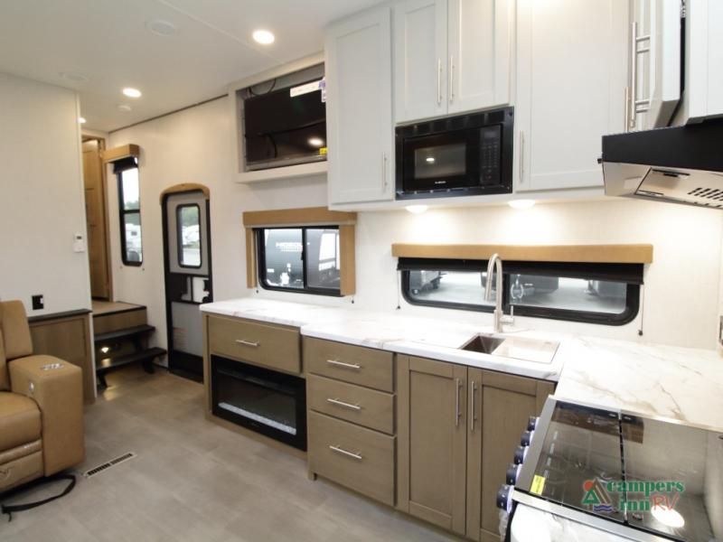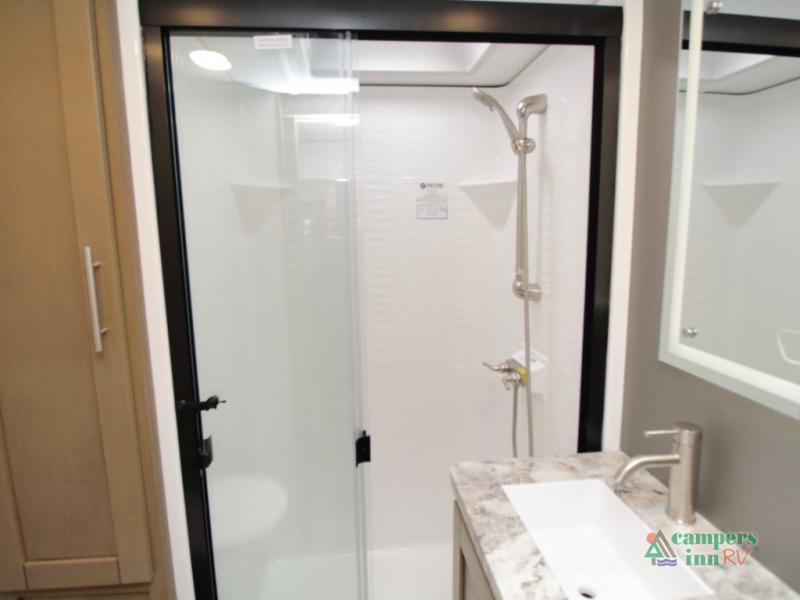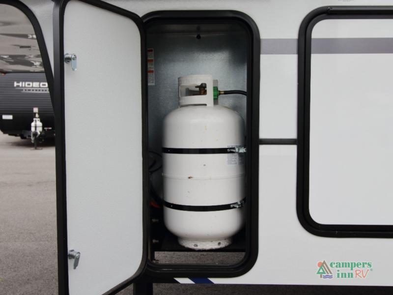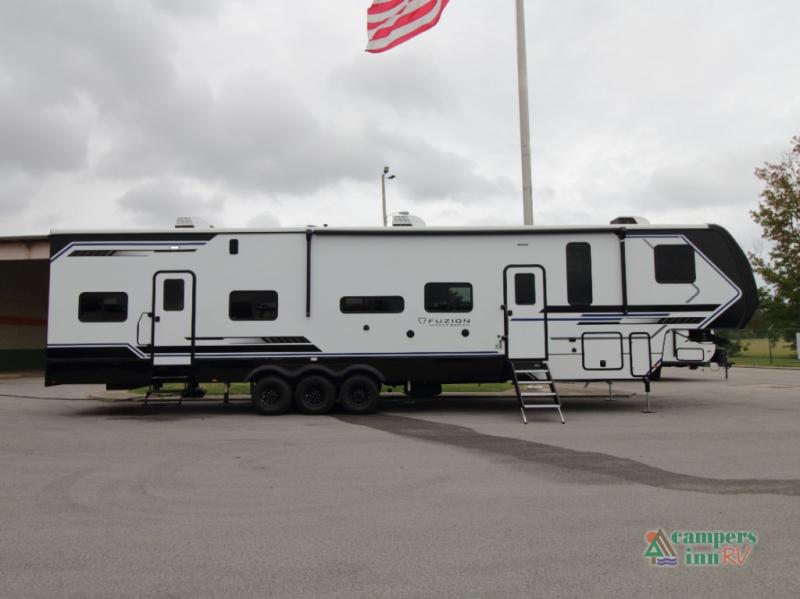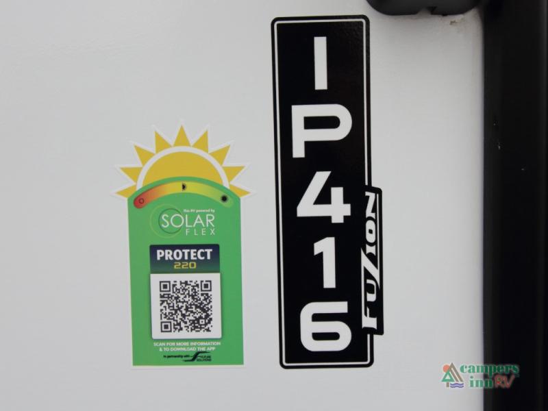 Enjoy modern conveniences like the Girard on-demand water heater, dual 30 lb. LP tanks, LED lighting, and smooth towing with the leaf spring suspension system. Whether you’re hitting the trails or relaxing at camp, the Fuzion Impact 416 delivers the perfect blend of power, comfort, and style.