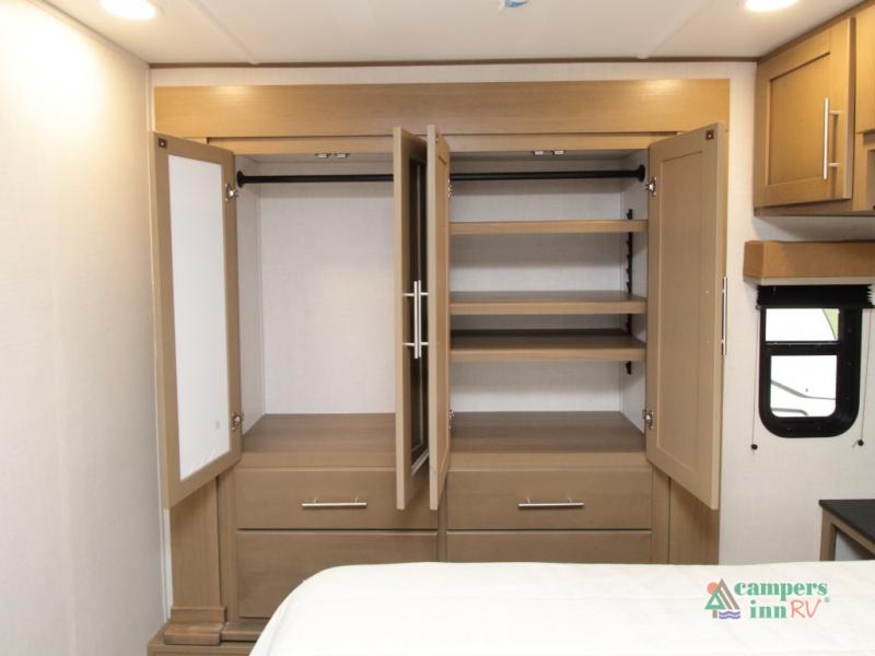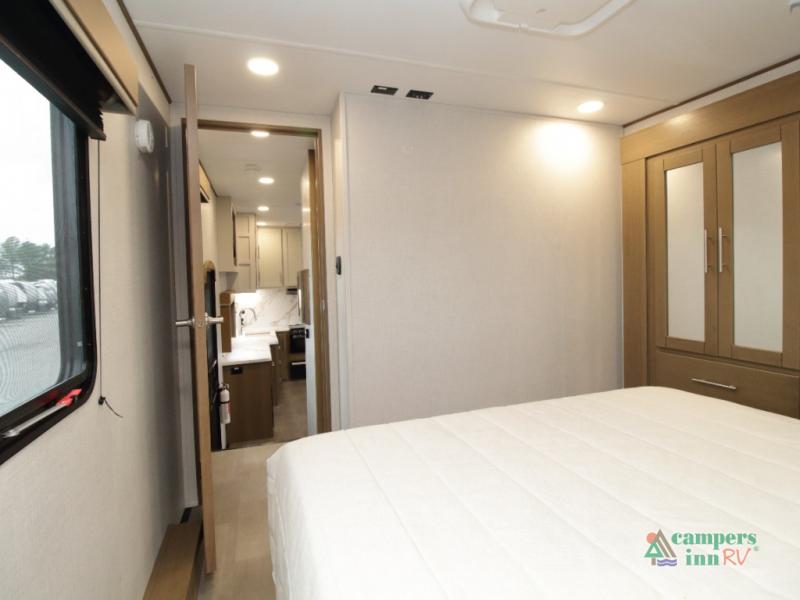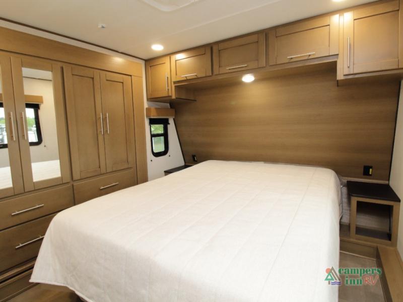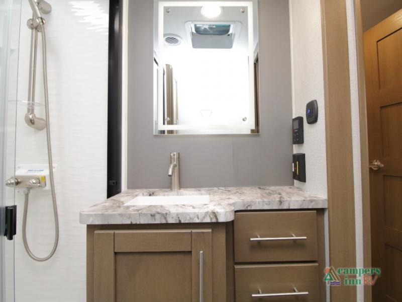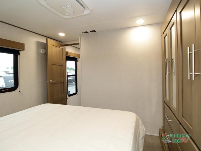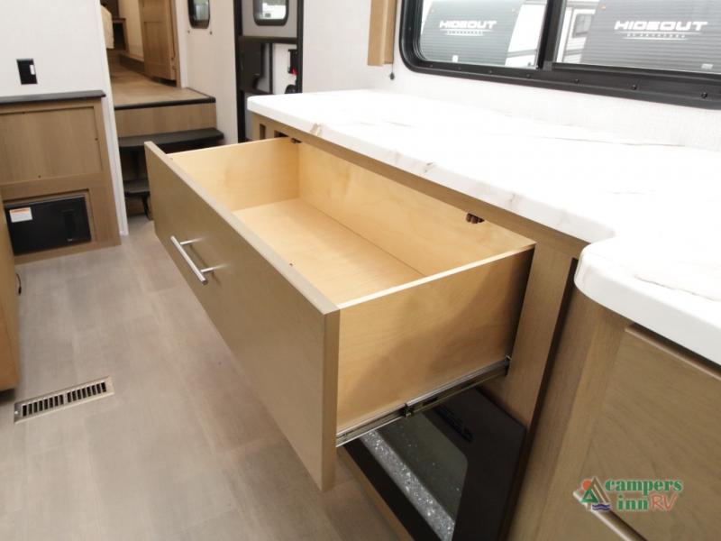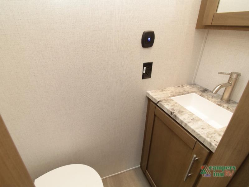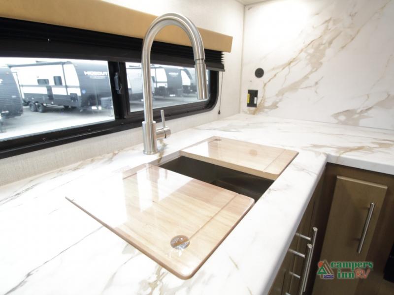 The Fuzion Impact Edition is designed to handle every journey with ease. Its laminated fiberglass sidewalls and 8' 4" wide-body construction provide durability and strength, while the heated, enclosed underbelly allows for all-season camping. Inside, you’ll find hardwood cabinetry, night shades, and fiberglass-backed linoleum flooring—easy to clean and built to last.