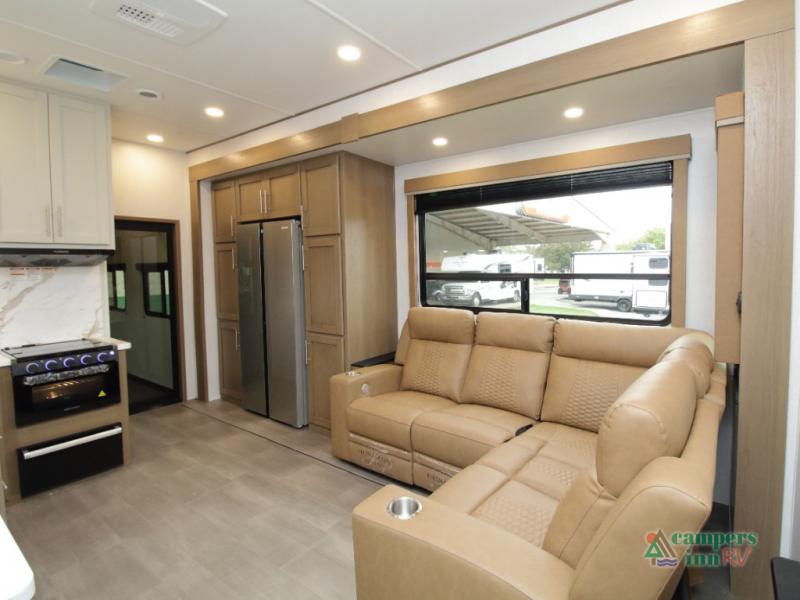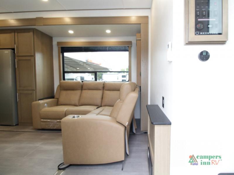 Take your adventures to the next level with the Keystone Fuzion Impact Edition 416. This toy hauler combines rugged capability with residential comfort, offering all the space and features you need for family trips, off-road excursions, and long weekends away.