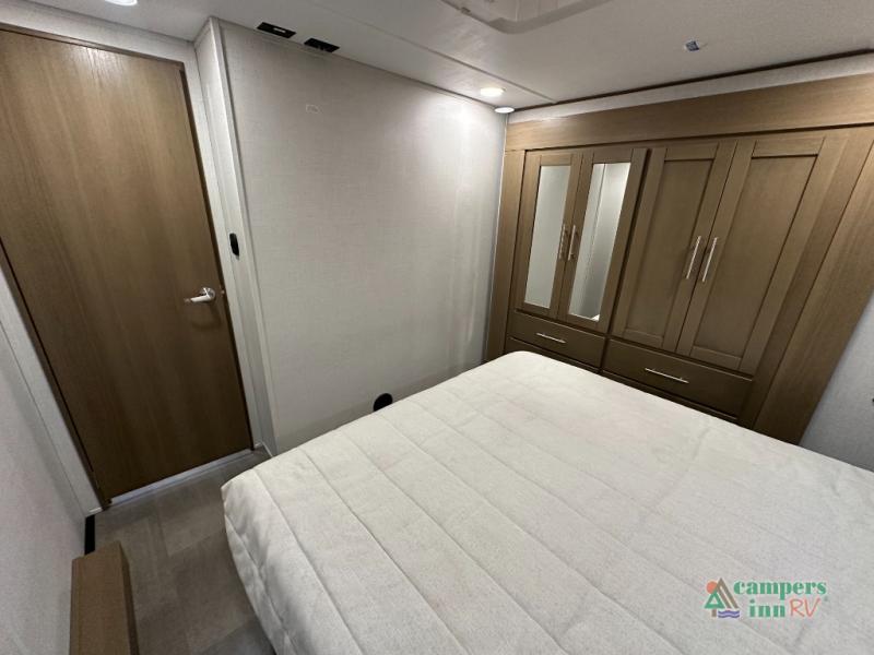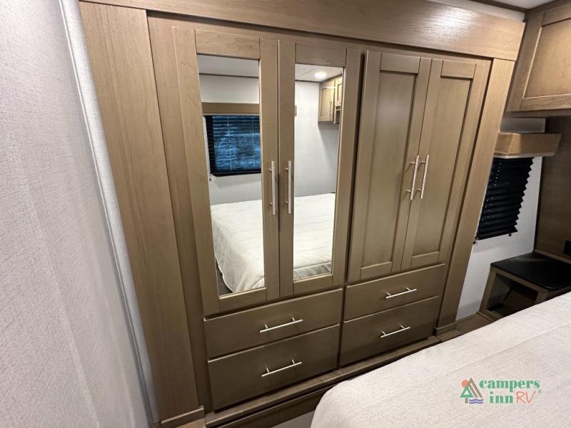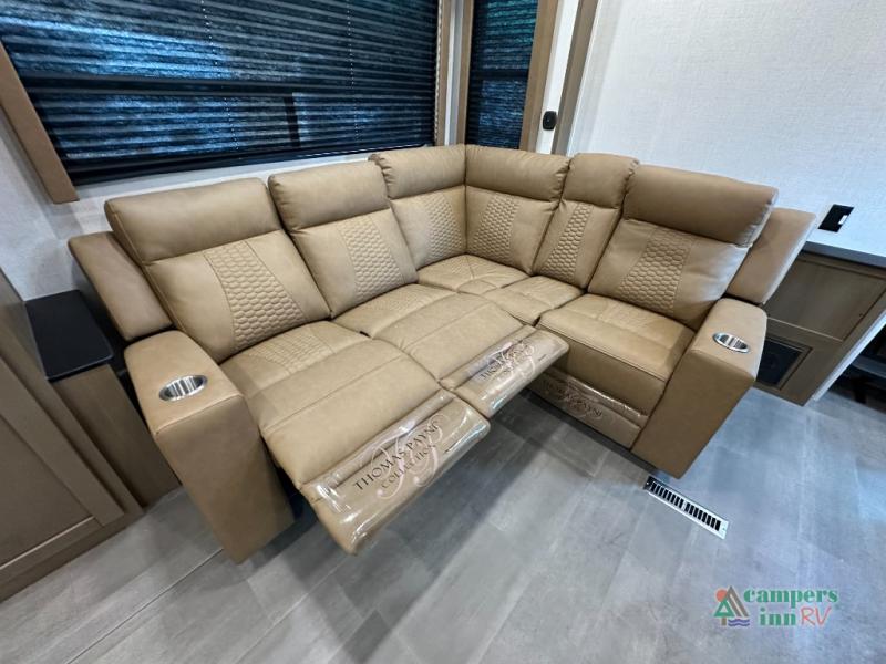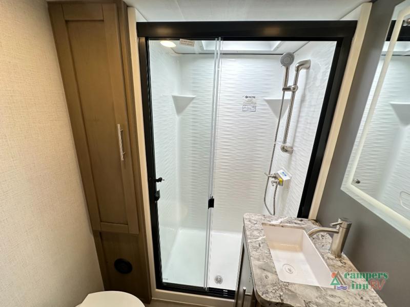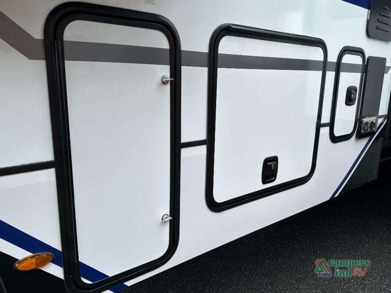 • Titan™ six-point hydraulic leveling, Lippert SolidStep®, large tinted frameless windows