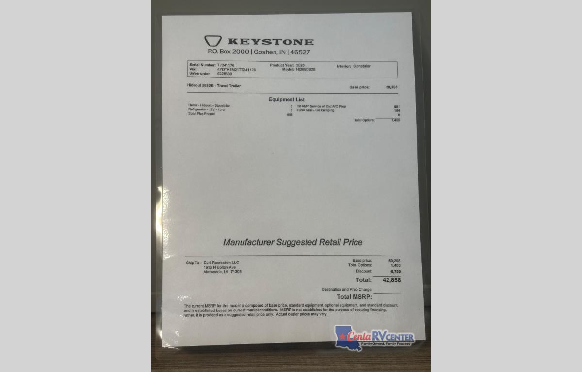 Keystone Hideout Sport travel trailer 269DB highlights: