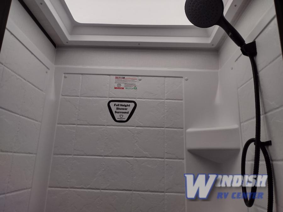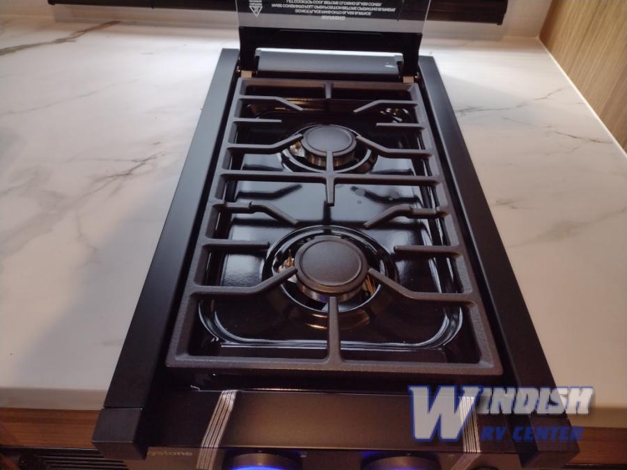 This spacious travel trailer is perfect for a large group or family since it can sleep eight to ten people each night. The bunkhouse will be a favorite spot for the littles ones to enjoy, especially with four bunk beds and a wardrobe with storage. You'll have a queen bed up front in the private bedroom, and if you have any other guests, they can sleep on the jack knife sofa and booth dinette! The two burner range and microwave oven allow you to make meals each day, and the large double door 12V refrigerator will keep leftovers fresh.