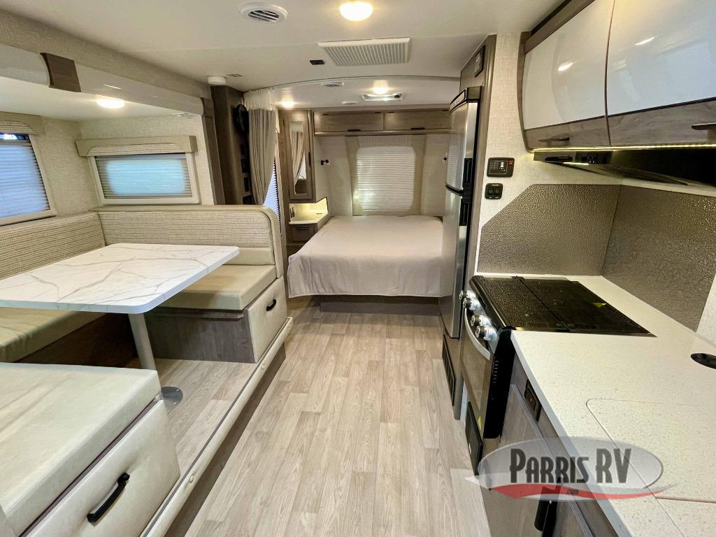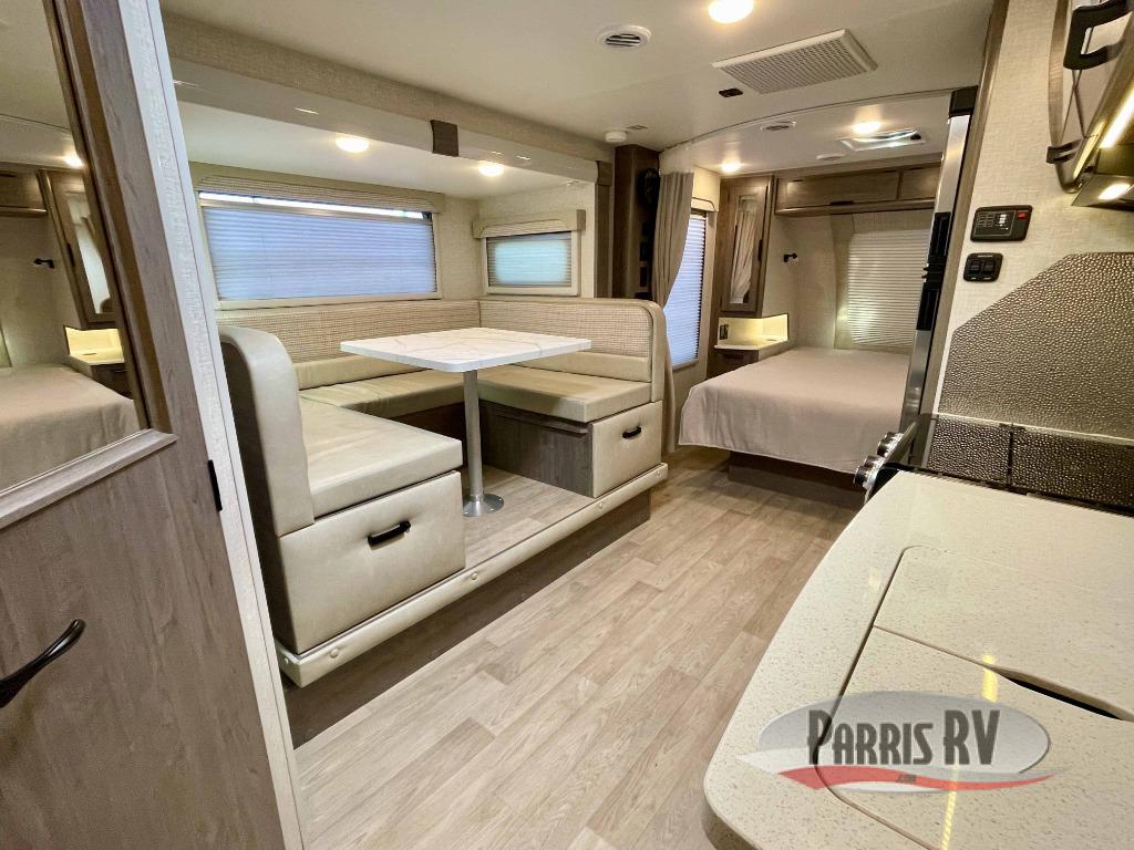 The main difference between this Lance travel trailer and model 1985 is that this unit offers you more storage space in the back in place of the full rear bath! The bathroom has a dual-pane skylight to let in natural sunlight as you get ready in the morning, and the deluxe queen pillowtop innerspring mattress with a bedspread and two LED reading lights is at the other end of the trailer. This bed can be sectioned off by drawing the privacy curtain, and the U-shaped dinette will provide sleeping accommodations for two more people. If you prefer, you can even change out the bed for the optional convertible sofa bed. Each person will benefit from a hot meal prepared in the kitchen on the stainless steel three-burner range!