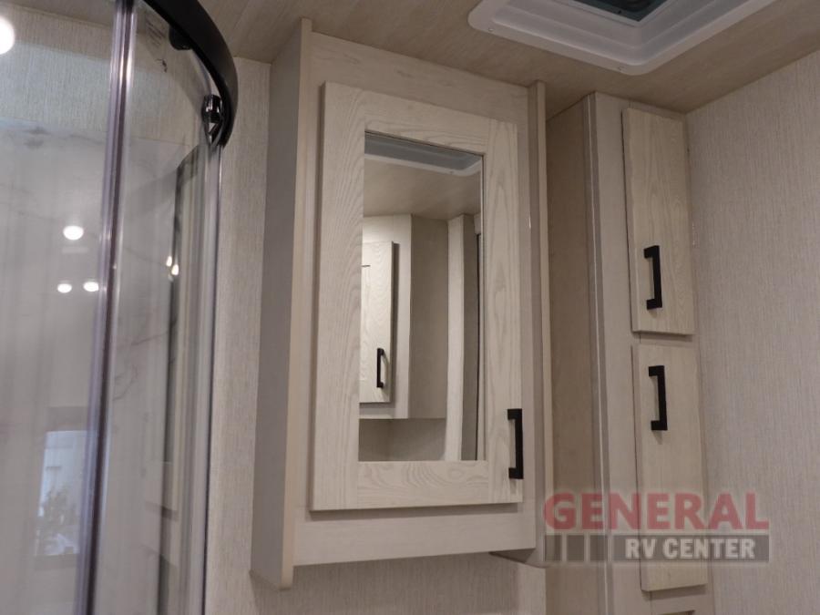 The Rebel Super C diesel motorhome by Nexus RV sits on a Chevy Silverado chassis with a 350 HP Duramax engine and 700 ft. lb. of torque for power you can feel! The exterior is eye-catching with its sleek seamless gelcoat fiberglass sidewalls and deluxe four-color body paint, along with a seamless wraparound fiberglass roof to ensure years of use. These 4x4 models include many convenient amenities such as, a water filtration system throughout, a 6.0 Onan diesel generator, and a Winegard 360 + with Gateway 4G LTE WiFi router to keep you connected to the outside world as you travel the country. The interior is made bright and open with LED lighting, and you will love the nickel pull handles and fixtures, plus window treatments and night roller shades for complete privacy.