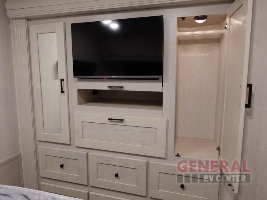 Your family will love traveling and sightseeing in this motorhome that includes 4-wheel drive. Once you arrive at your destination, set up the electric awning with LED lights for an outdoor living space. You may want to watch a show on the flat screen TV in the living area as the chef of the group prepares lunch. The dual entry bath includes a shower skylight, a large medicine cabinet, and a shower head with a flexible hose for convenience. You and your spouse will have the rear master bedroom all to yourselves, while the grandkids sleep on the cab-over bunk, the jackknife sofa, or the booth dinette!
