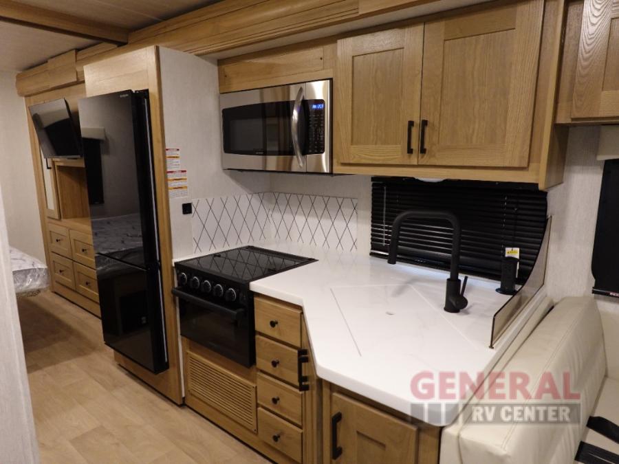 If you're looking for quality, safety, and luxury in a motorhome, look no further than one of these NeXus RV Wraith Super C diesel motorhomes! A Freightliner S2 RV chassis holds them together and a 6.7L 340 HP Cummins ISB diesel engine coupled with a 6-speed Allison transmission powers them. They have a best in class "all steel-composite" that is up to 72% stronger for safer rides and the steel in the superstructure helps minimize potential water damage while also maximizing the thermal and sound insulation. Experience at-home touches like a deluxe innerspring mattress, upgraded flooring, solid surface kitchen countertops, and night roller shades for privacy. You will be able to enjoy endless hot showers with an on-demand hot water heater, and the 6.0 diesel generator will keep you powered up for every adventure. Outside, you'll love the look of the deluxe 4-color full body paint, and the frameless windows with automotive seal will help keep the elements out.
