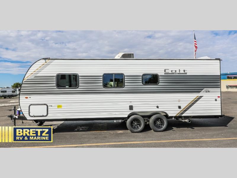 With any Colt travel trailer by Open Range RV, you can be sure you're getting a budget-friendly unit designed to fit your lifestyle! Each one is built to last with a PVC roofing membrane and built-in A-frame, plus there are nitrogen-filled radial tires and self-adjusting electric brakes for easy towing. You will appreciate the utilities that include 30-amp service, an A/C unit, and an on-demand tankless water heater. A few interior comforts include vinyl flooring throughout, solid hardwood cabinet doors, and residential grade kitchen countertops to make your space feel more like home. There are additional features available, depending on the edition you choose, along with available options to further customize your Colt travel trailer!