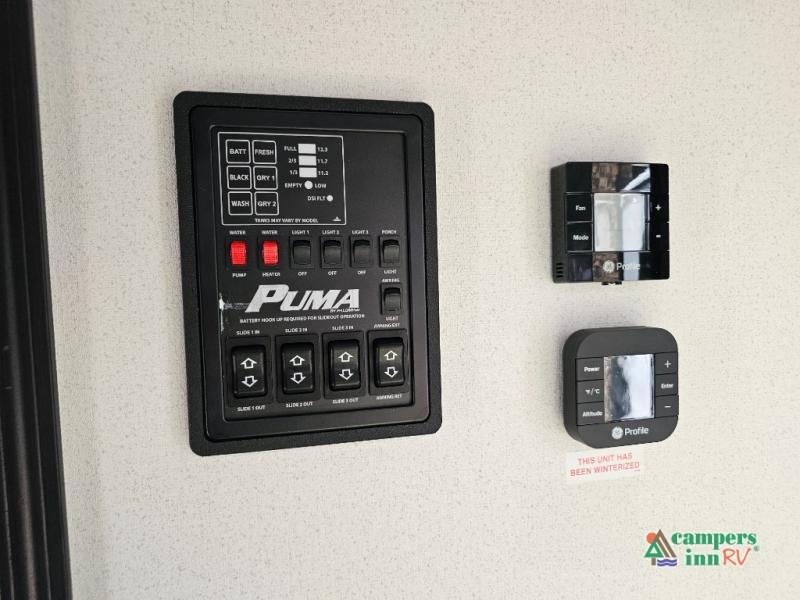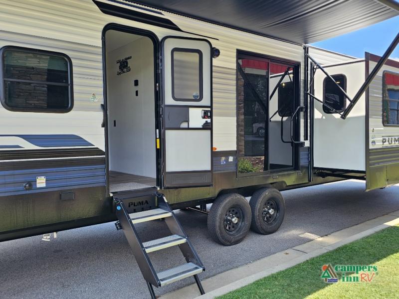 Each Puma Destination trailer by Palomino is designed to give you unforgettable getaways to the destination of your choice! The Value Shopper Package features Congoleum linoleum, LED lighting, an AM/FM/Bluetooth stereo, and an upgraded kitchen faucet to name a few comforts. Two exterior speakers are included with the required Marquis Edition, along with solid surface countertops, night roller shades, an outside shower, and four stabilizer jacks to help keep your unit secure. You will also appreciate the roof and side mount solar prep for off-grid capabilities, as well as WiFi prep if you need the option to work while you're away from home!