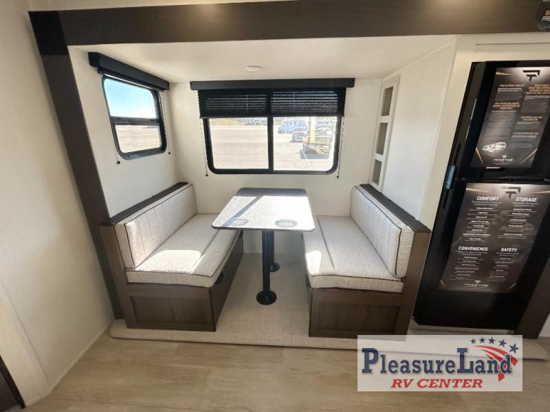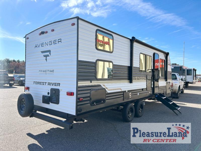 With any Avenger travel trailer by Prime Time RV, you will find innovation, a solid build, and comfort at every turn. Each model is built with Tuff Coat on the exterior metal, a fully enclosed underbelly, and a PVC roof membrane to help extend the life of your trailer. You will also find automotive name badging on the exterior, along with an exterior shower, front rail LED light strips, plus an XL padded entry grab handle to name a few conveniences. There are plenty of storage spaces inside, as well as Congoleum flooring and woven PVC marine grade slide out flooring, a designer shower surround, and seamless pressed countertops. You are sure to appreciate the onboard water filtration system, tankless water heater, plus 30K BTU furnace and 15K ducted A/C to help keep you comfortable.