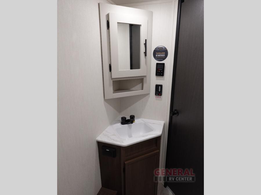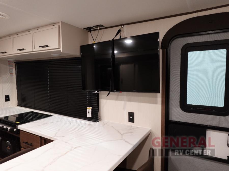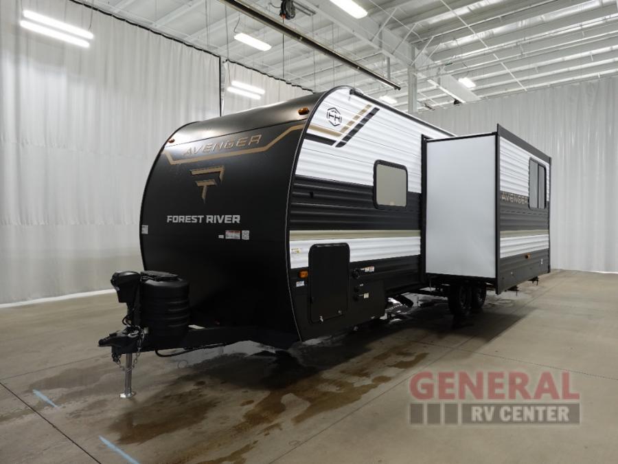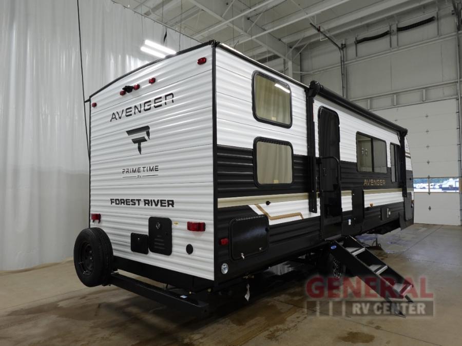 With any Avenger travel trailer by Prime Time RV, you will find innovation, a solid build, and comfort at every turn. Each model is built with Tuff Coat on the exterior metal, a fully enclosed underbelly, and a PVC roof membrane to help extend the life of your trailer. You will also find automotive name badging on the exterior, along with an exterior shower, front rail LED light strips, plus an XL padded entry grab handle to name a few conveniences. There are plenty of storage spaces inside, as well as Congoleum flooring and woven PVC marine grade slide out flooring, a designer shower surround, and seamless pressed countertops. You are sure to appreciate the onboard water filtration system, tankless water heater, plus 30K BTU furnace and 15K ducted A/C to help keep you comfortable.