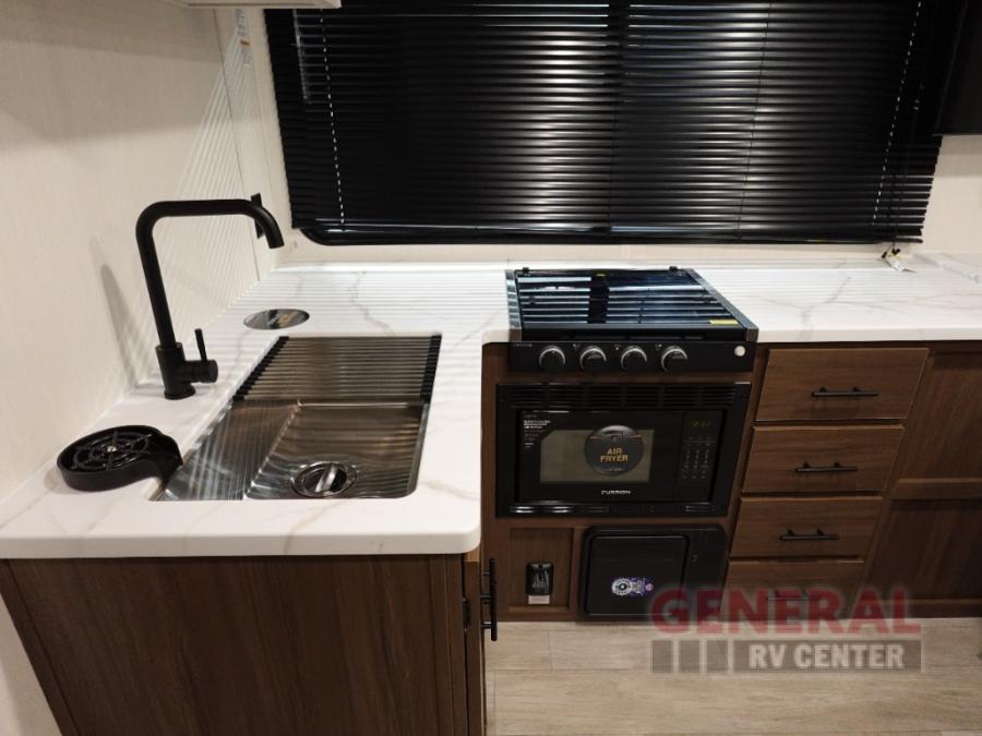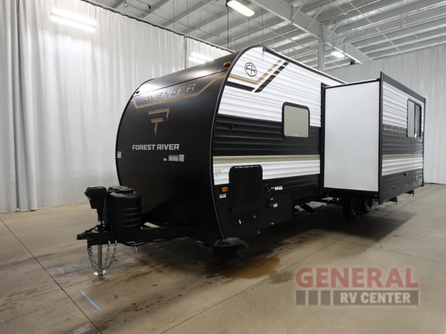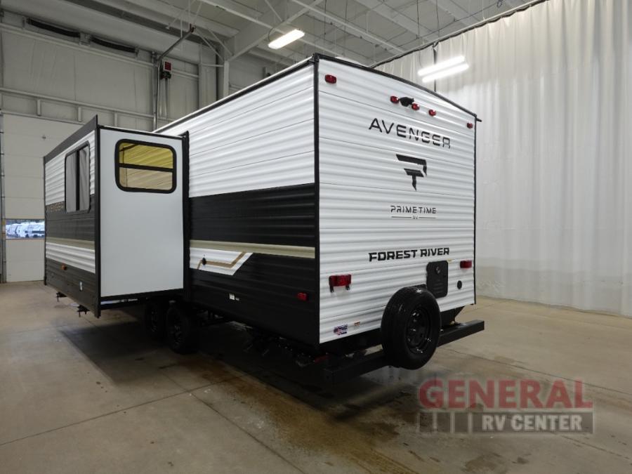 With any Avenger travel trailer by Prime Time RV, you will find innovation, a solid build, and comfort at every turn. Each model is built with Tuff Coat on the exterior metal, a fully enclosed underbelly, and a PVC roof membrane to help extend the life of your trailer. You will also find automotive name badging on the exterior, along with an exterior shower, front rail LED light strips, plus an XL padded entry grab handle to name a few conveniences. There are plenty of storage spaces inside, as well as Congoleum flooring and woven PVC marine grade slide out flooring, a designer shower surround, and seamless pressed countertops. You are sure to appreciate the onboard water filtration system, tankless water heater, plus 30K BTU furnace and 15K ducted A/C to help keep you comfortable.