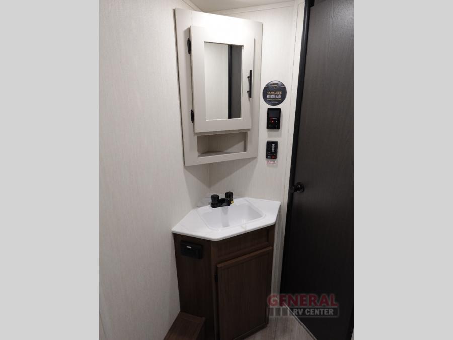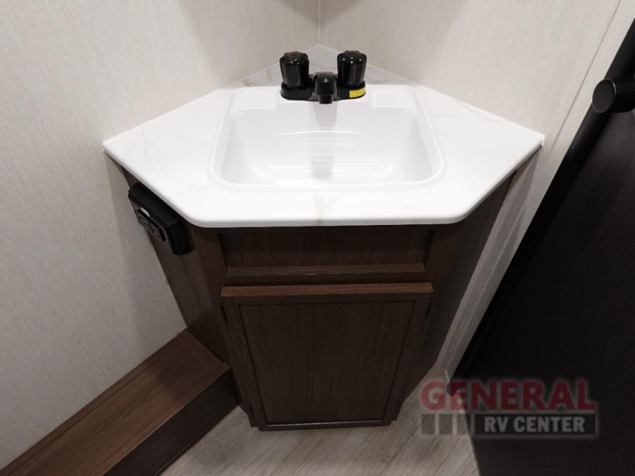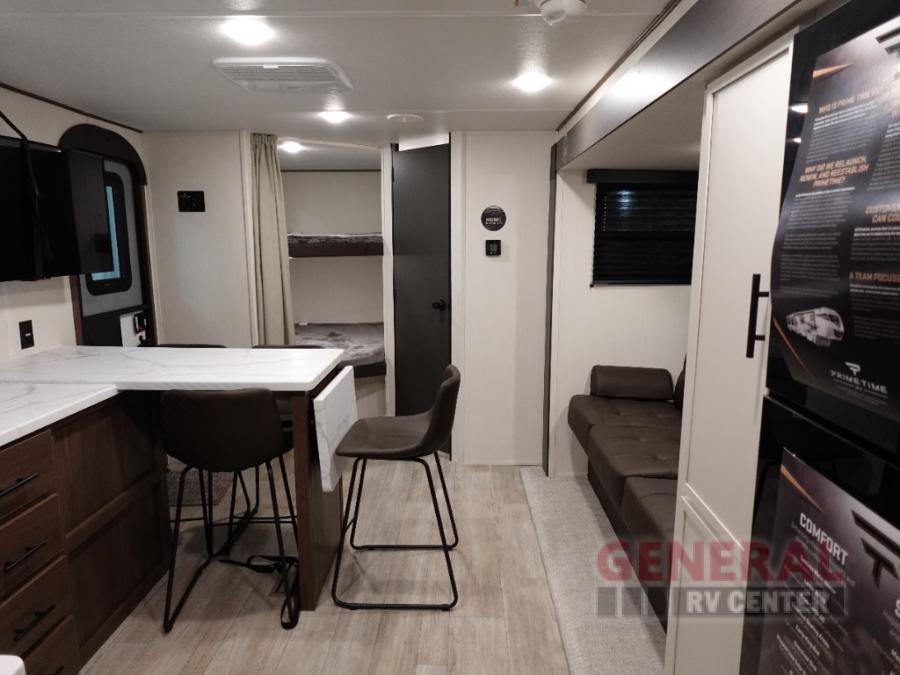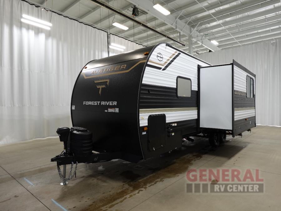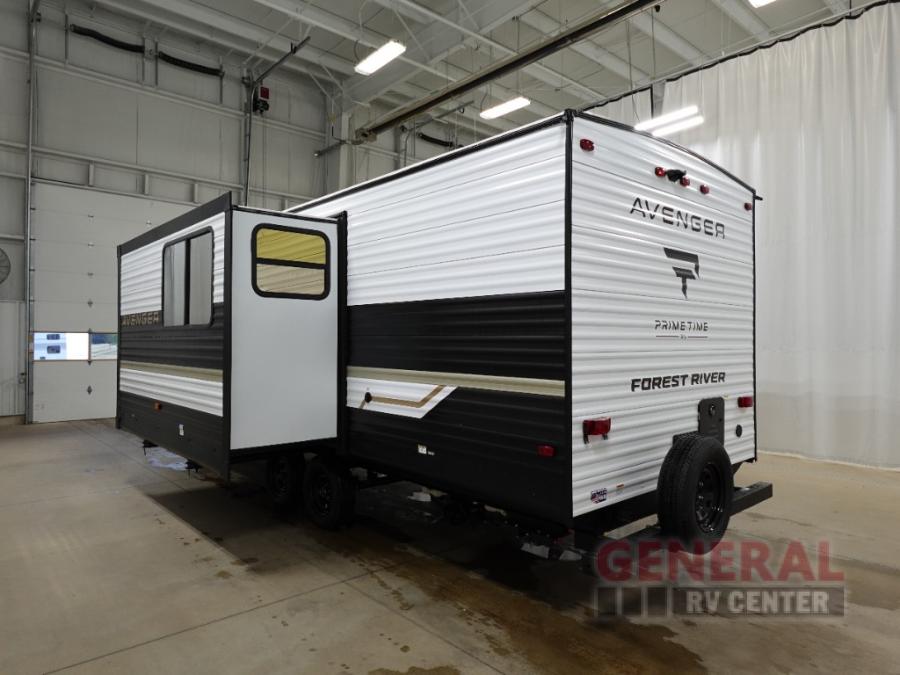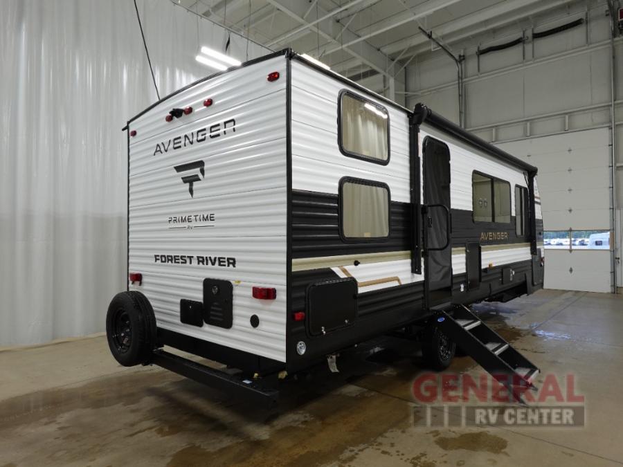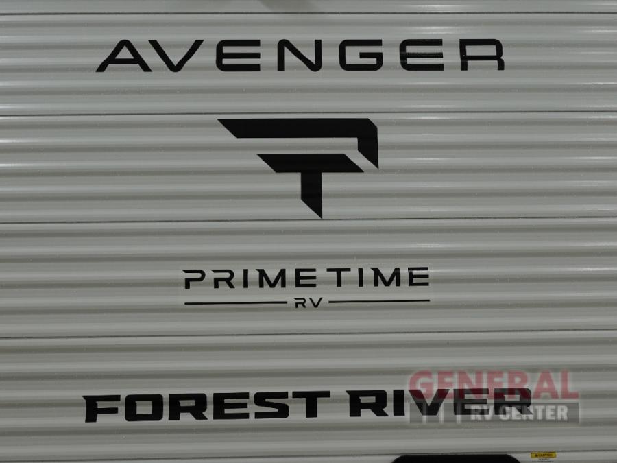 With any Avenger travel trailer by Prime Time RV, you will find innovation, a solid build, and comfort at every turn. Each model is built with Tuff Coat on the exterior metal, a fully enclosed underbelly, and a PVC roof membrane to help extend the life of your trailer. You will also find automotive name badging on the exterior, along with an exterior shower, front rail LED light strips, plus an XL padded entry grab handle to name a few conveniences. There are plenty of storage spaces inside, as well as Congoleum flooring and woven PVC marine grade slide out flooring, a designer shower surround, and seamless pressed countertops. You are sure to appreciate the onboard water filtration system, tankless water heater, plus 30K BTU furnace and 15K ducted A/C to help keep you comfortable.