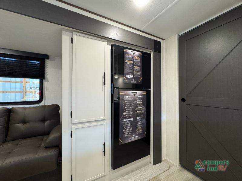 With any Avenger travel trailer by Prime Time RV, you will find innovation, a solid build, and comfort at every turn. Each model is built with Tuff Coat on the exterior metal, a fully enclosed underbelly, and a PVC roof membrane to help extend the life of your trailer. You will also find automotive name badging on the exterior, along with an exterior shower, front rail LED light strips, plus an XL padded entry grab handle to name a few conveniences. There are plenty of storage spaces inside, as well as Congoleum flooring and woven PVC marine grade slide out flooring, a designer shower surround, and seamless pressed countertops. You are sure to appreciate the onboard water filtration system, tankless water heater, plus 30K BTU furnace and 15K ducted A/C to help keep you comfortable.
