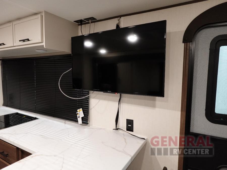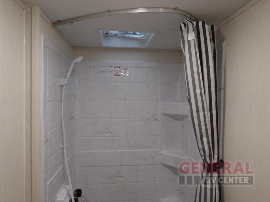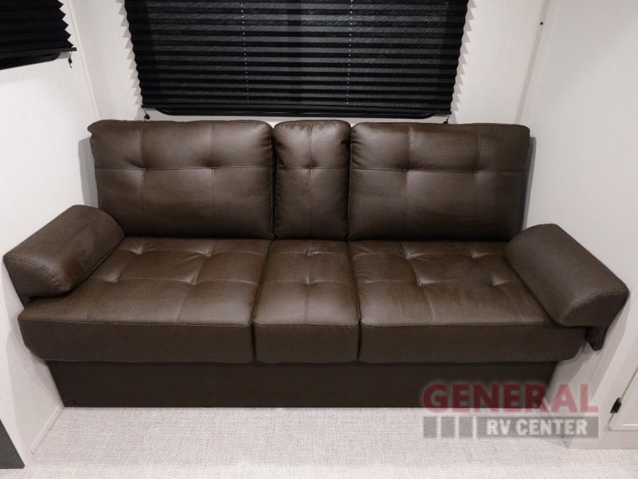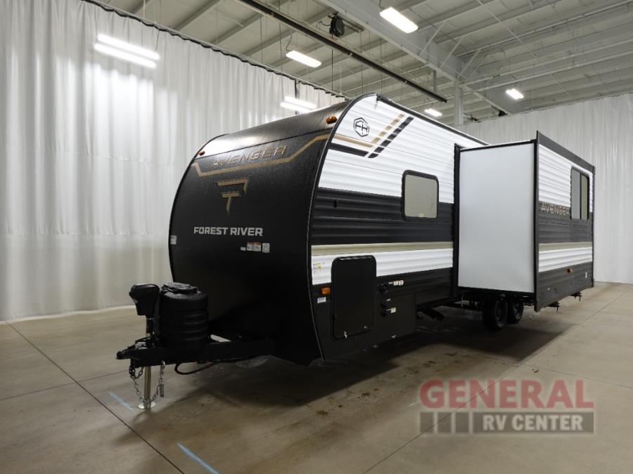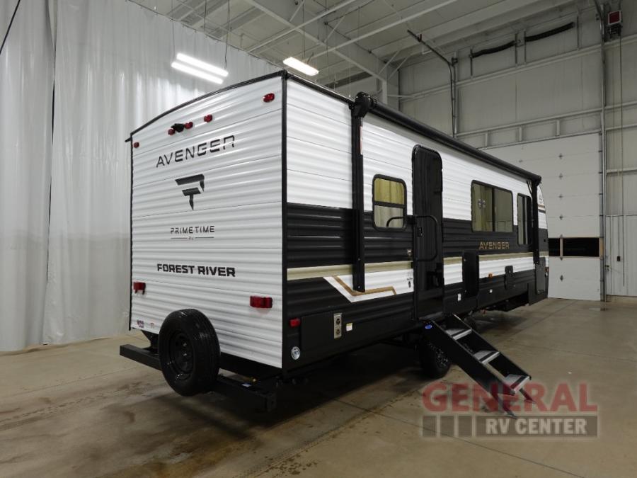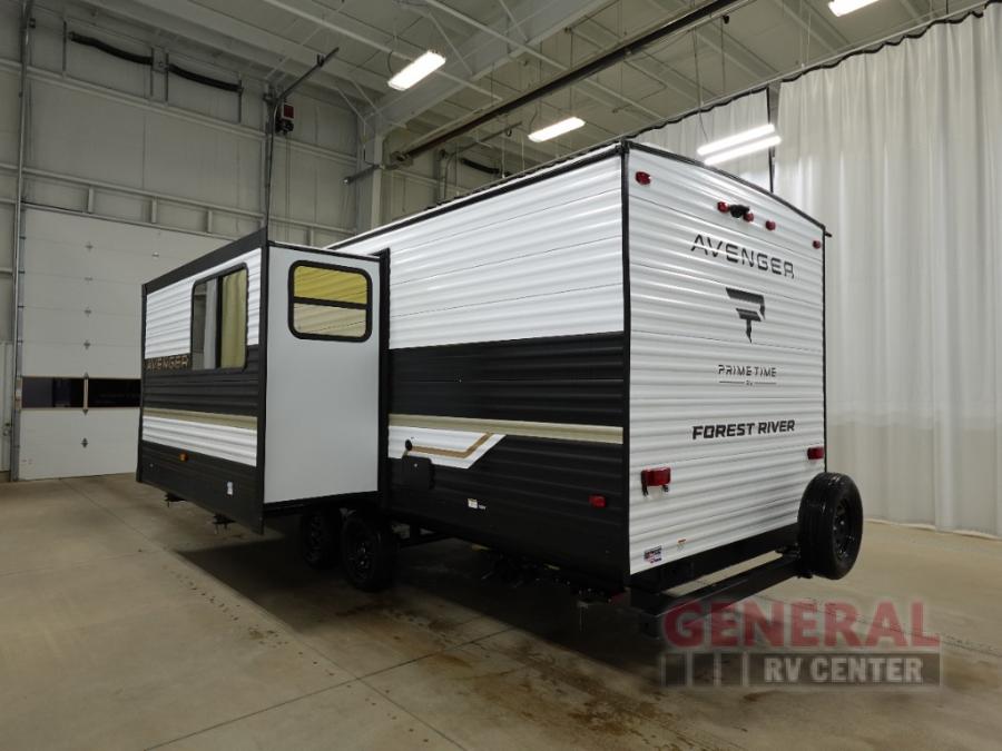 With any Avenger travel trailer by Prime Time RV, you will find innovation, a solid build, and comfort at every turn. Each model is built with Tuff Coat on the exterior metal, a fully enclosed underbelly, and a PVC roof membrane to help extend the life of your trailer. You will also find automotive name badging on the exterior, along with an exterior shower, front rail LED light strips, plus an XL padded entry grab handle to name a few conveniences. There are plenty of storage spaces inside, as well as Congoleum flooring and woven PVC marine grade slide out flooring, a designer shower surround, and seamless pressed countertops. You are sure to appreciate the onboard water filtration system, tankless water heater, plus 30K BTU furnace and 15K ducted A/C to help keep you comfortable.