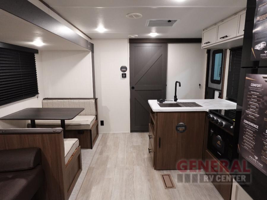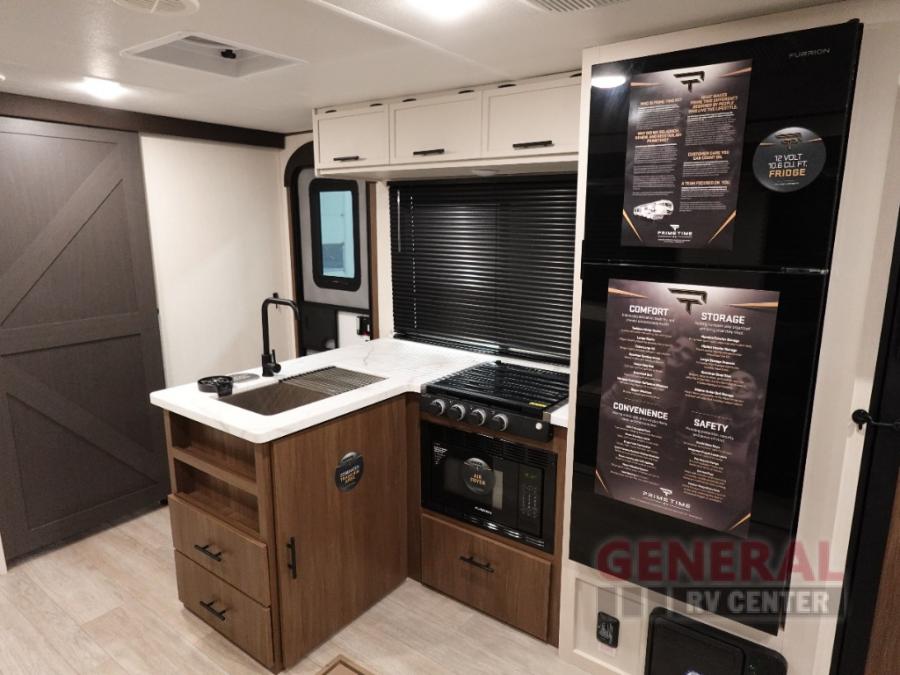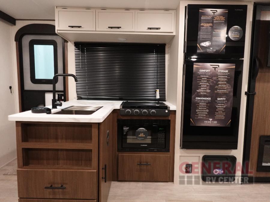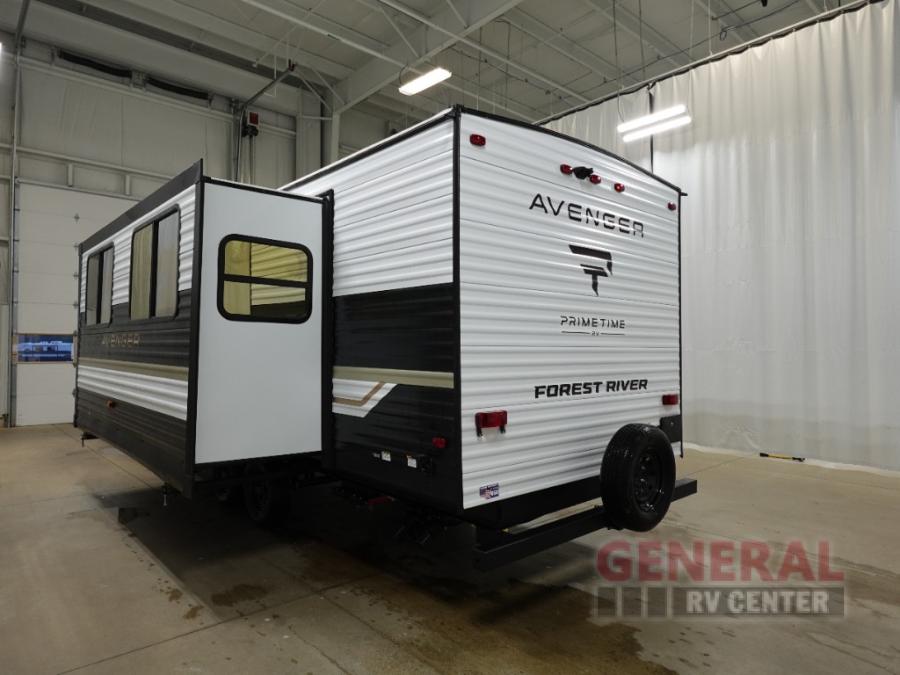 With any Avenger travel trailer by Prime Time RV, you will find innovation, a solid build, and comfort at every turn. Each model is built with Tuff Coat on the exterior metal, a fully enclosed underbelly, and a PVC roof membrane to help extend the life of your trailer. You will also find automotive name badging on the exterior, along with an exterior shower, front rail LED light strips, plus an XL padded entry grab handle to name a few conveniences. There are plenty of storage spaces inside, as well as Congoleum flooring and woven PVC marine grade slide out flooring, a designer shower surround, and seamless pressed countertops. You are sure to appreciate the onboard water filtration system, tankless water heater, plus 30K BTU furnace and 15K ducted A/C to help keep you comfortable.