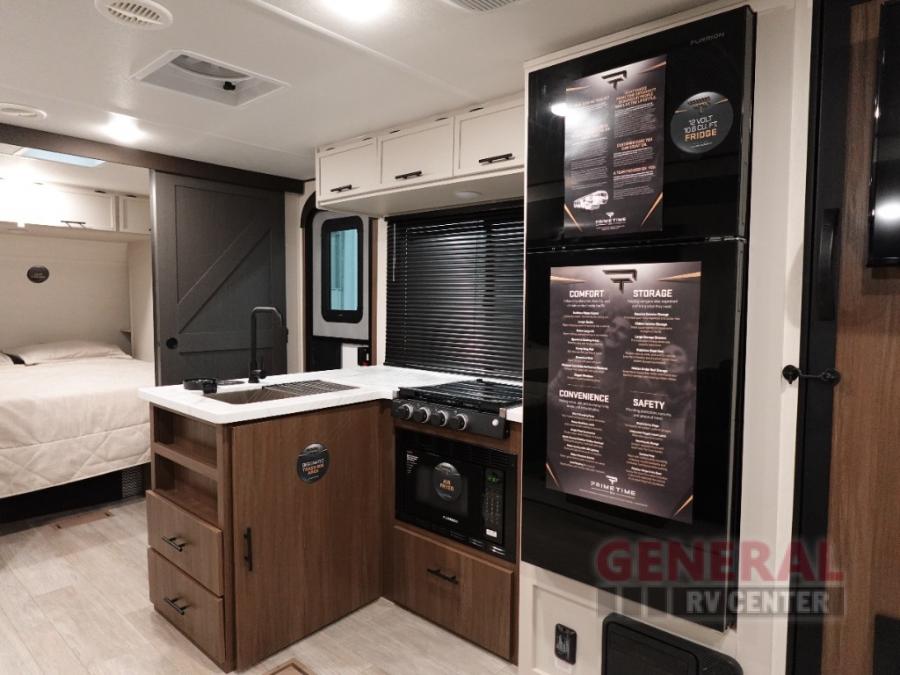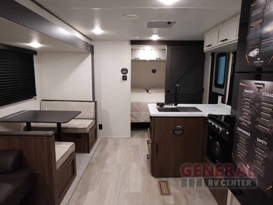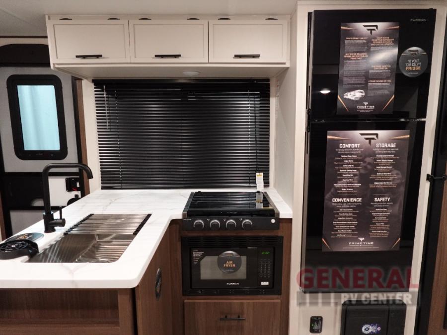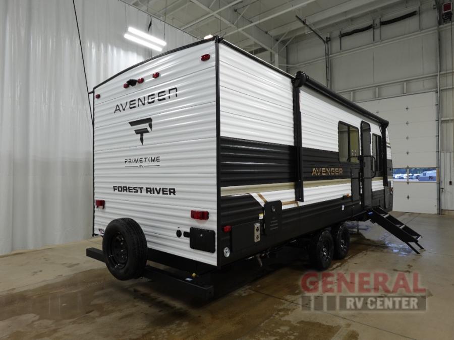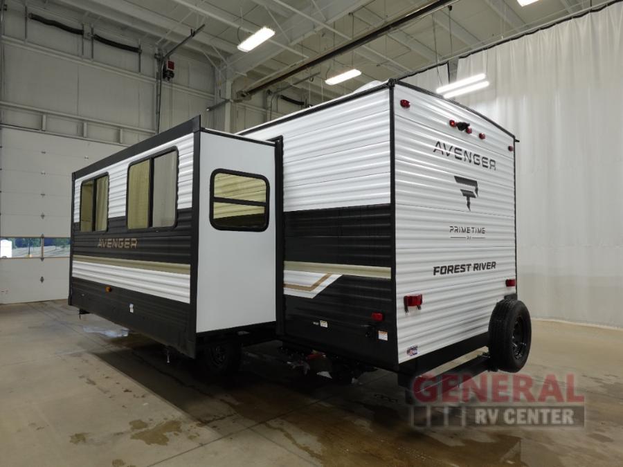With any Avenger travel trailer by Prime Time RV, you will find innovation, a solid build, and comfort at every turn. Each model is built with Tuff Coat on the exterior metal, a fully enclosed underbelly, and a PVC roof membrane to help extend the life of your trailer. You will also find automotive name badging on the exterior, along with an exterior shower, front rail LED light strips, plus an XL padded entry grab handle to name a few conveniences. There are plenty of storage spaces inside, as well as Congoleum flooring and woven PVC marine grade slide out flooring, a designer shower surround, and seamless pressed countertops. You are sure to appreciate the onboard water filtration system, tankless water heater, plus 30K BTU furnace and 15K ducted A/C to help keep you comfortable.