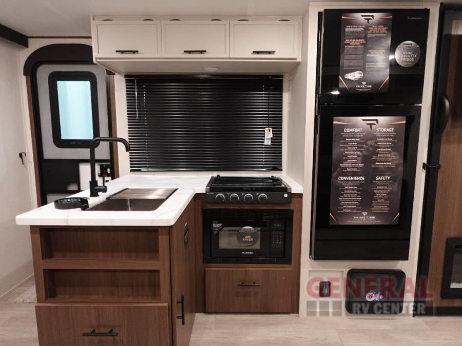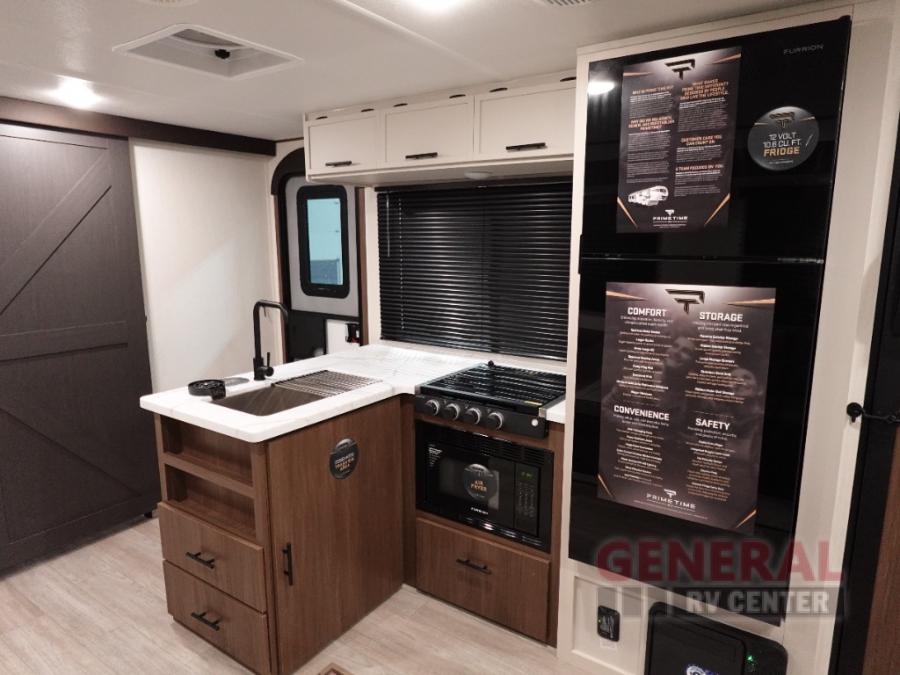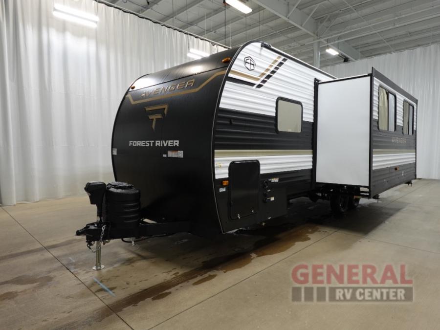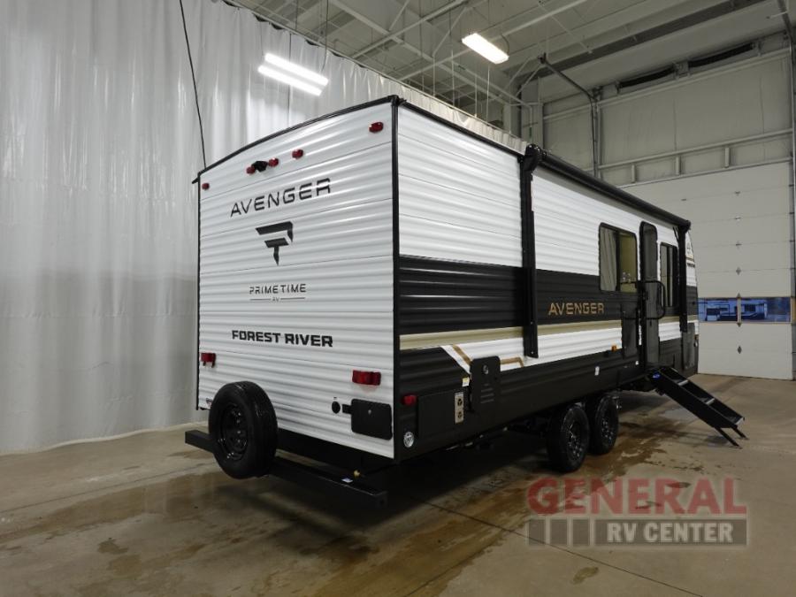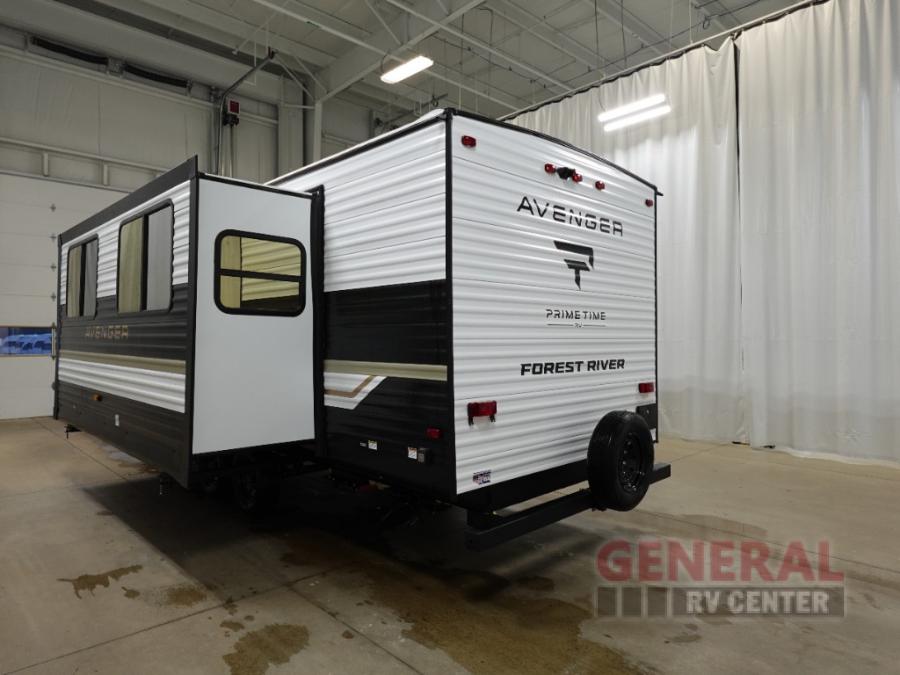 With any Avenger travel trailer by Prime Time RV, you will find innovation, a solid build, and comfort at every turn. Each model is built with Tuff Coat on the exterior metal, a fully enclosed underbelly, and a PVC roof membrane to help extend the life of your trailer. You will also find automotive name badging on the exterior, along with an exterior shower, front rail LED light strips, plus an XL padded entry grab handle to name a few conveniences. There are plenty of storage spaces inside, as well as Congoleum flooring and woven PVC marine grade slide out flooring, a designer shower surround, and seamless pressed countertops. You are sure to appreciate the onboard water filtration system, tankless water heater, plus 30K BTU furnace and 15K ducted A/C to help keep you comfortable.