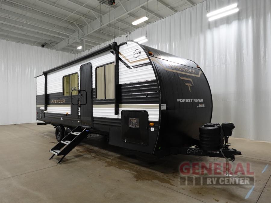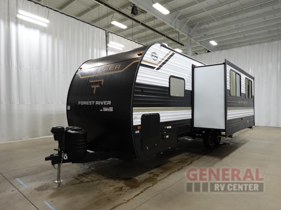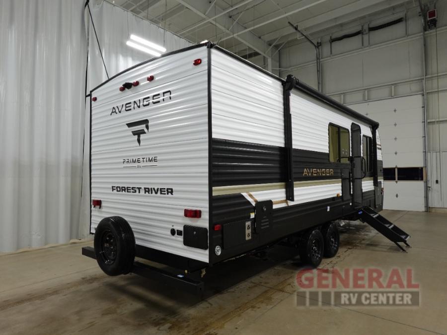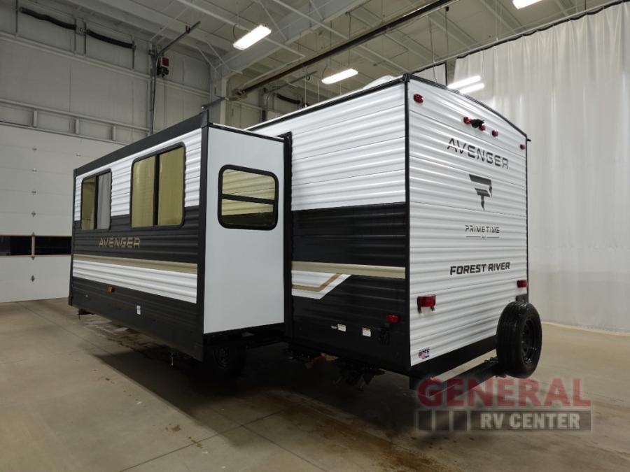 With any Avenger travel trailer by Prime Time RV, you will find innovation, a solid build, and comfort at every turn. Each model is built with Tuff Coat on the exterior metal, a fully enclosed underbelly, and a PVC roof membrane to help extend the life of your trailer. You will also find automotive name badging on the exterior, along with an exterior shower, front rail LED light strips, plus an XL padded entry grab handle to name a few conveniences. There are plenty of storage spaces inside, as well as Congoleum flooring and woven PVC marine grade slide out flooring, a designer shower surround, and seamless pressed countertops. You are sure to appreciate the onboard water filtration system, tankless water heater, plus 30K BTU furnace and 15K ducted A/C to help keep you comfortable.