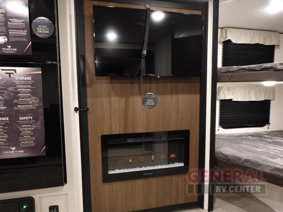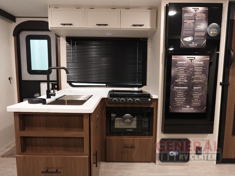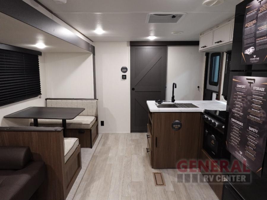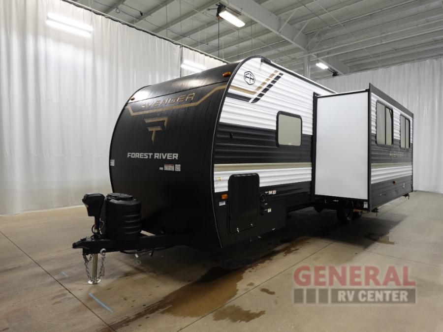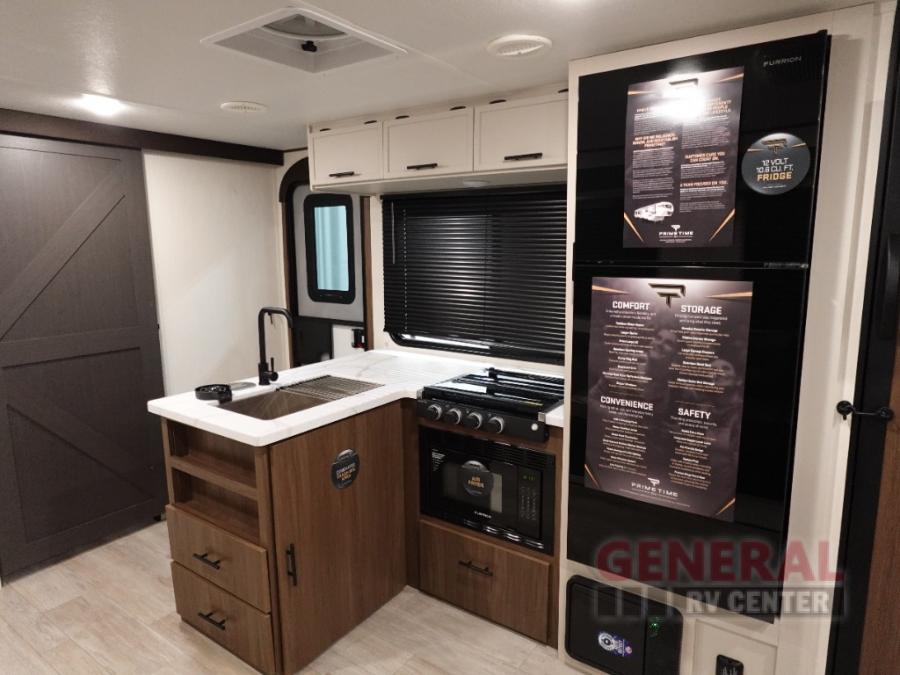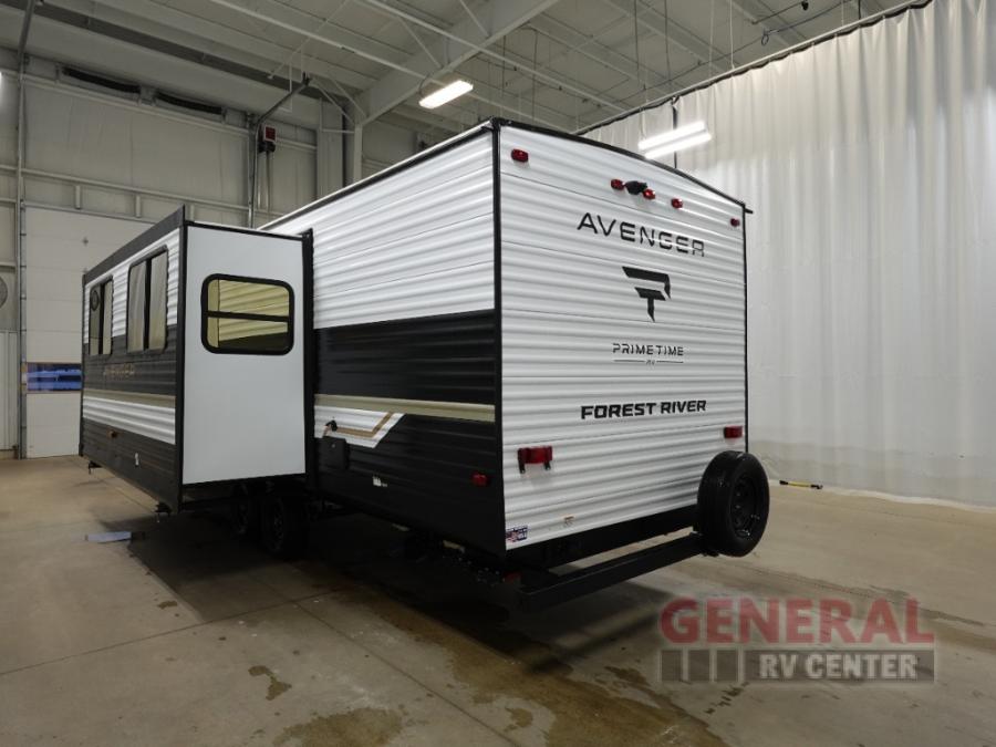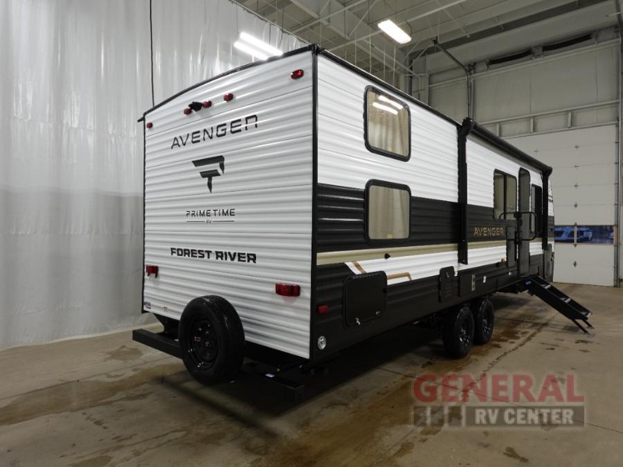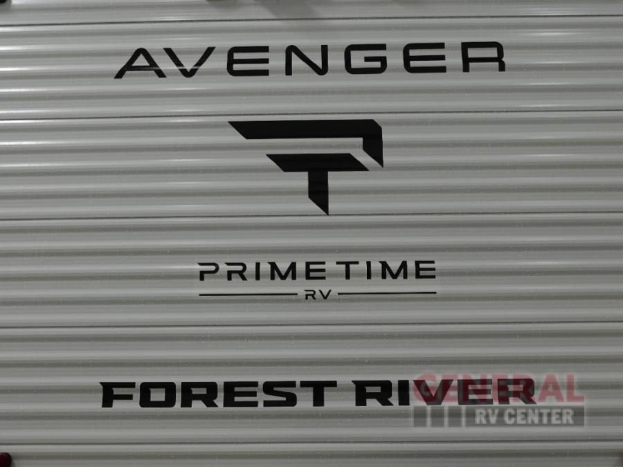With any Avenger travel trailer by Prime Time RV, you will find innovation, a solid build, and comfort at every turn. Each model is built with Tuff Coat on the exterior metal, a fully enclosed underbelly, and a PVC roof membrane to help extend the life of your trailer. You will also find automotive name badging on the exterior, along with an exterior shower, front rail LED light strips, plus an XL padded entry grab handle to name a few conveniences. There are plenty of storage spaces inside, as well as Congoleum flooring and woven PVC marine grade slide out flooring, a designer shower surround, and seamless pressed countertops. You are sure to appreciate the onboard water filtration system, tankless water heater, plus 30K BTU furnace and 15K ducted A/C to help keep you comfortable.