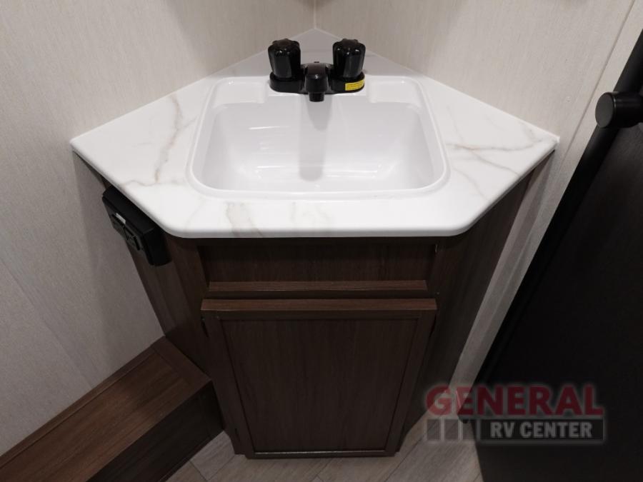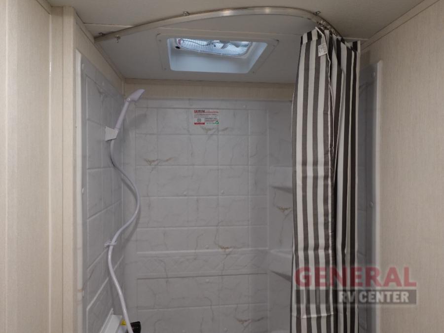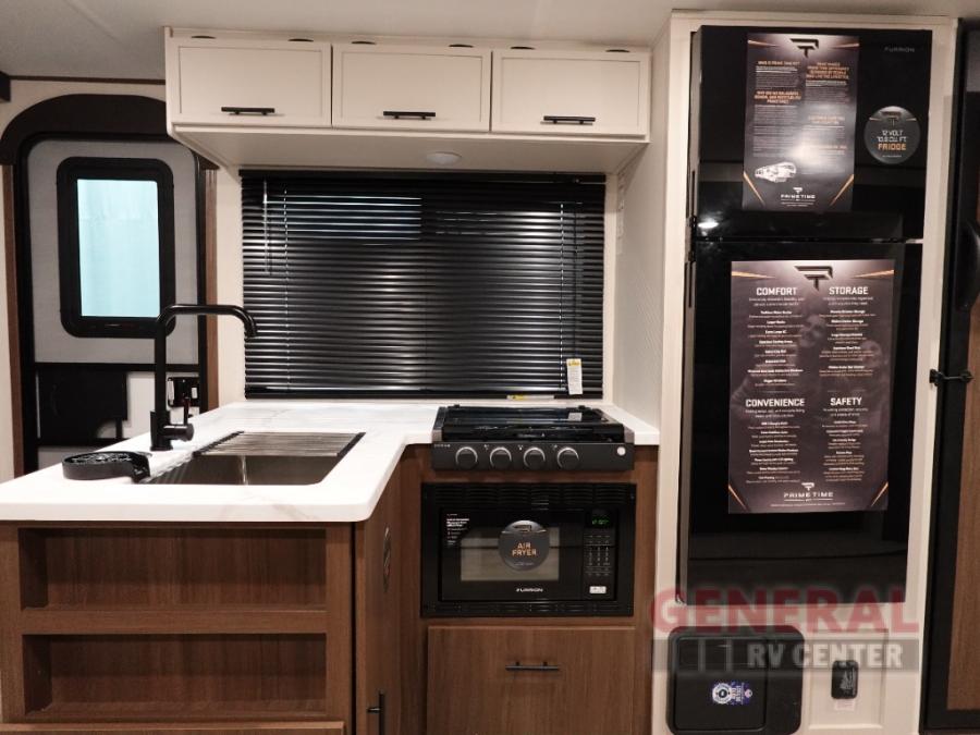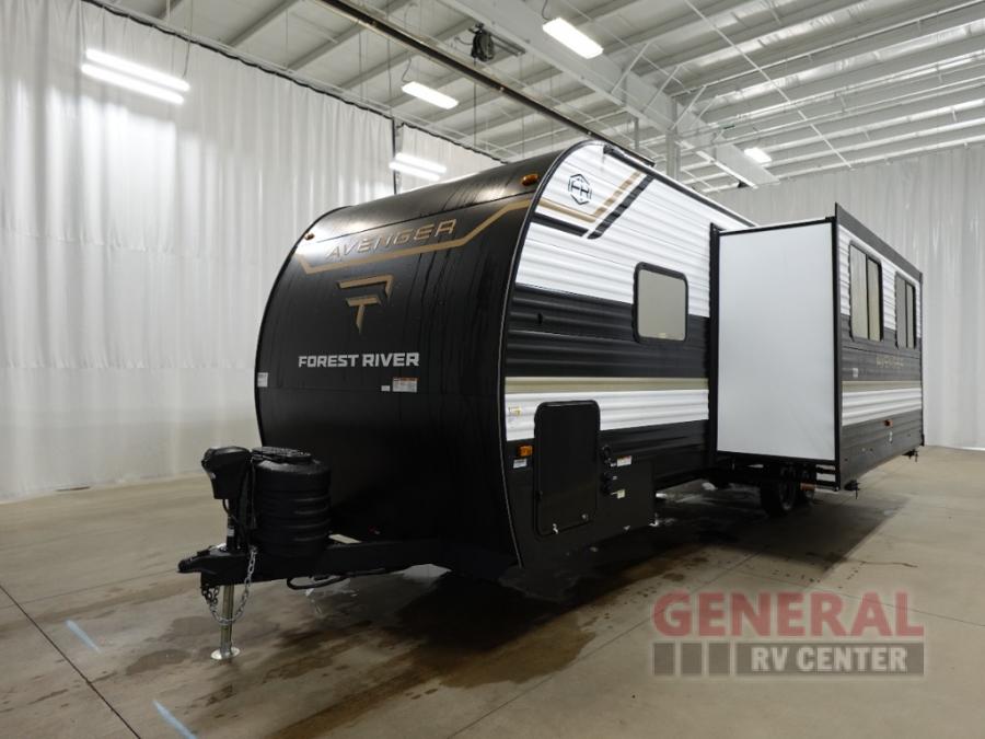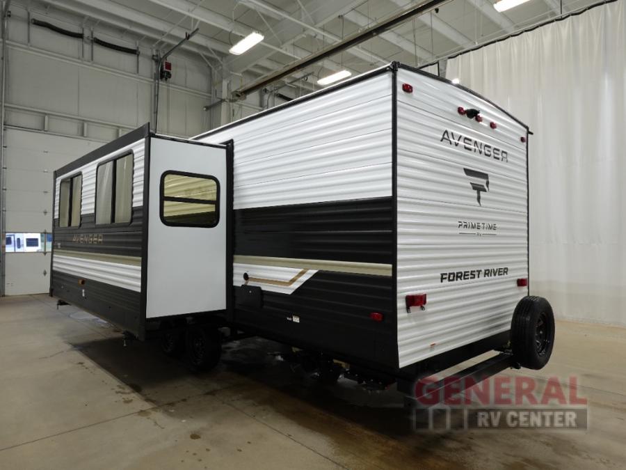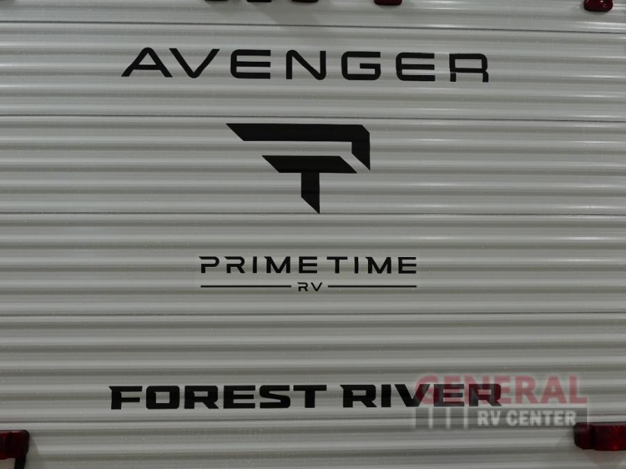 With any Avenger travel trailer by Prime Time RV, you will find innovation, a solid build, and comfort at every turn. Each model is built with Tuff Coat on the exterior metal, a fully enclosed underbelly, and a PVC roof membrane to help extend the life of your trailer. You will also find automotive name badging on the exterior, along with an exterior shower, front rail LED light strips, plus an XL padded entry grab handle to name a few conveniences. There are plenty of storage spaces inside, as well as Congoleum flooring and woven PVC marine grade slide out flooring, a designer shower surround, and seamless pressed countertops. You are sure to appreciate the onboard water filtration system, tankless water heater, plus 30K BTU furnace and 15K ducted A/C to help keep you comfortable.