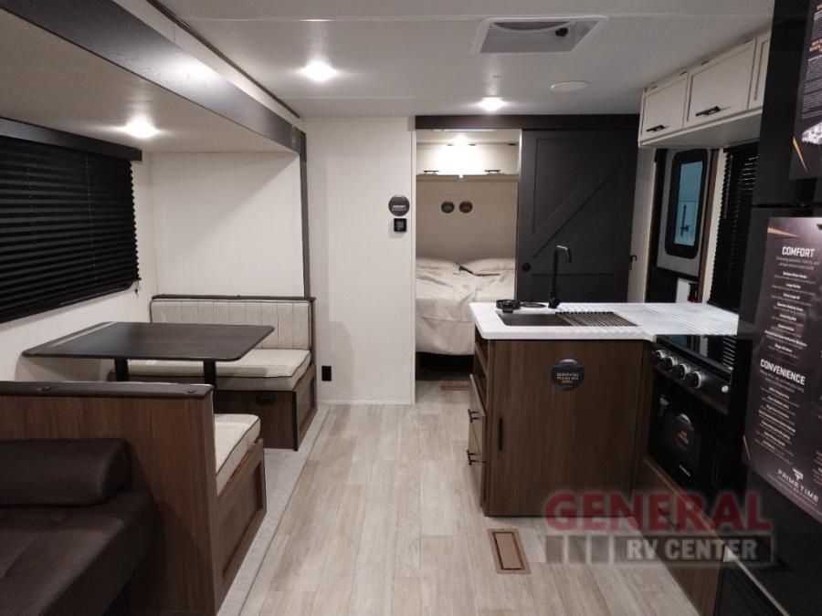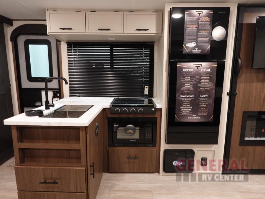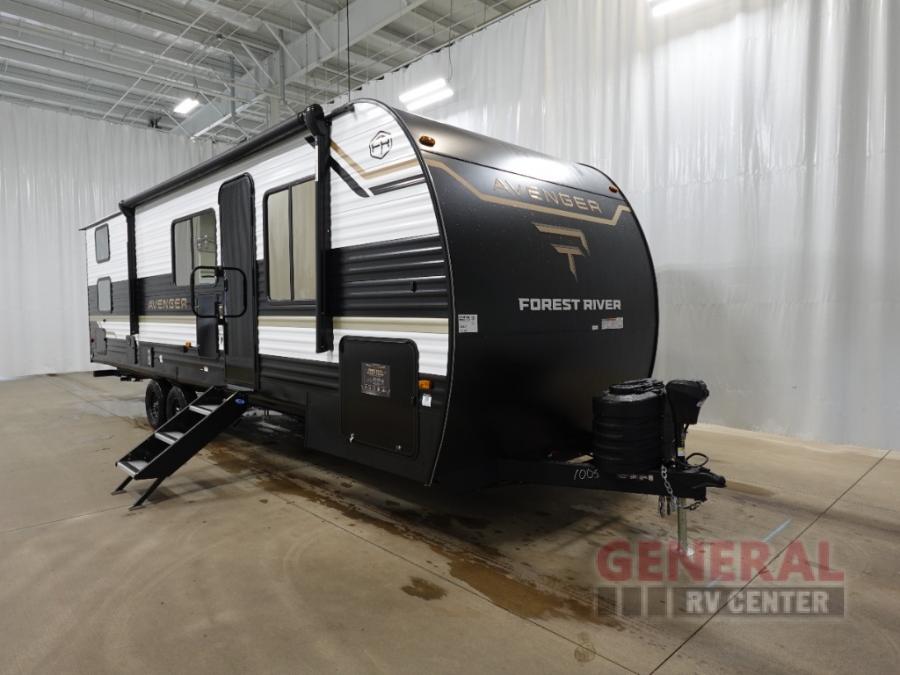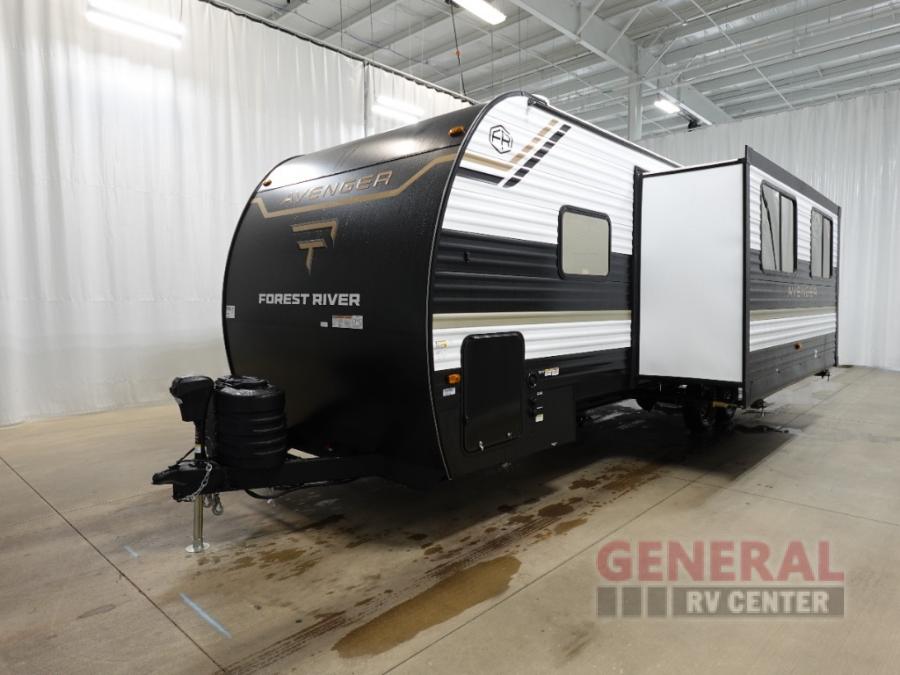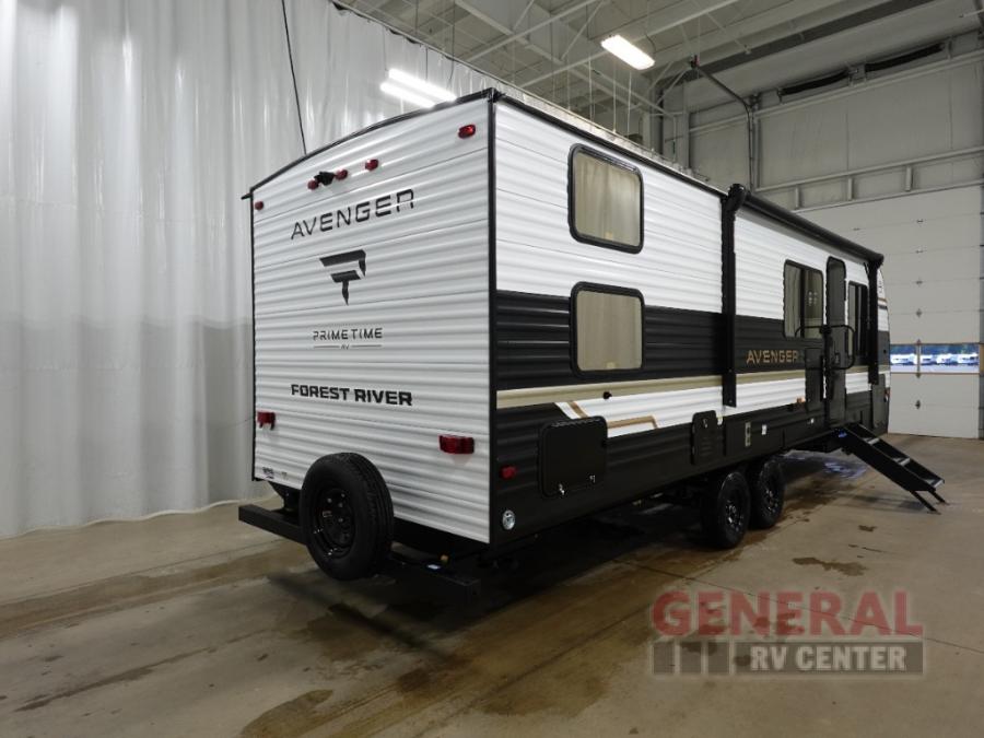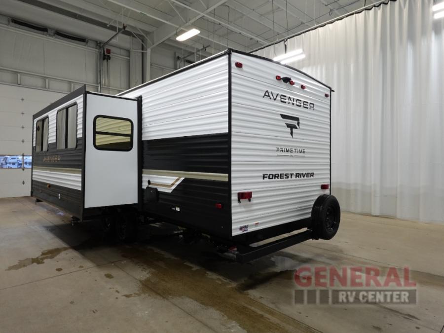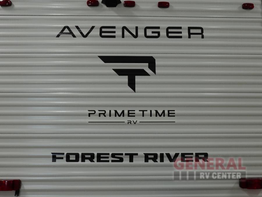 With any Avenger travel trailer by Prime Time RV, you will find innovation, a solid build, and comfort at every turn. Each model is built with Tuff Coat on the exterior metal, a fully enclosed underbelly, and a PVC roof membrane to help extend the life of your trailer. You will also find automotive name badging on the exterior, along with an exterior shower, front rail LED light strips, plus an XL padded entry grab handle to name a few conveniences. There are plenty of storage spaces inside, as well as Congoleum flooring and woven PVC marine grade slide out flooring, a designer shower surround, and seamless pressed countertops. You are sure to appreciate the onboard water filtration system, tankless water heater, plus 30K BTU furnace and 15K ducted A/C to help keep you comfortable.