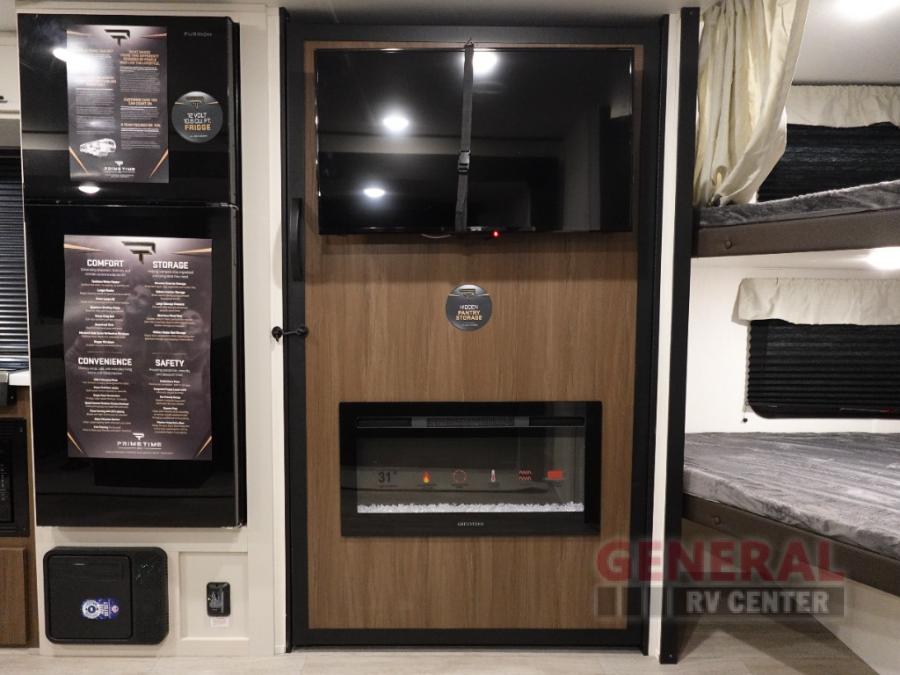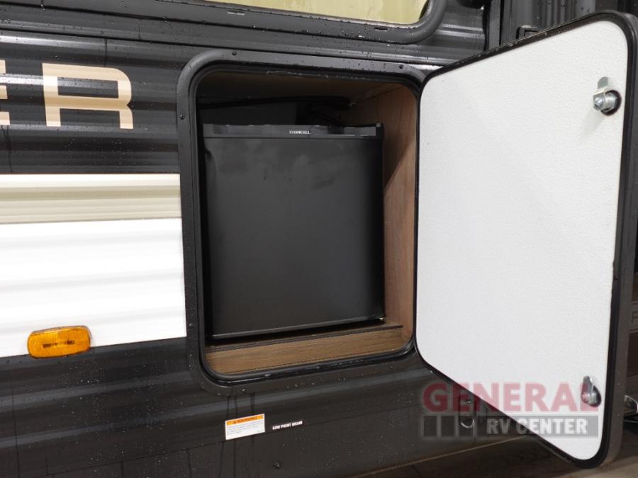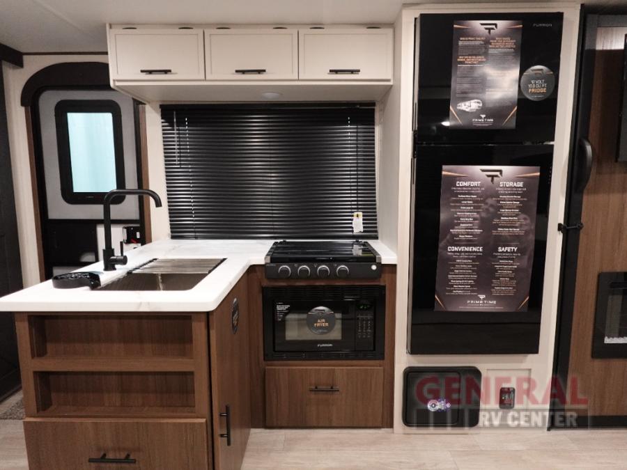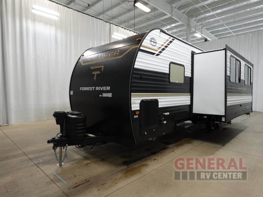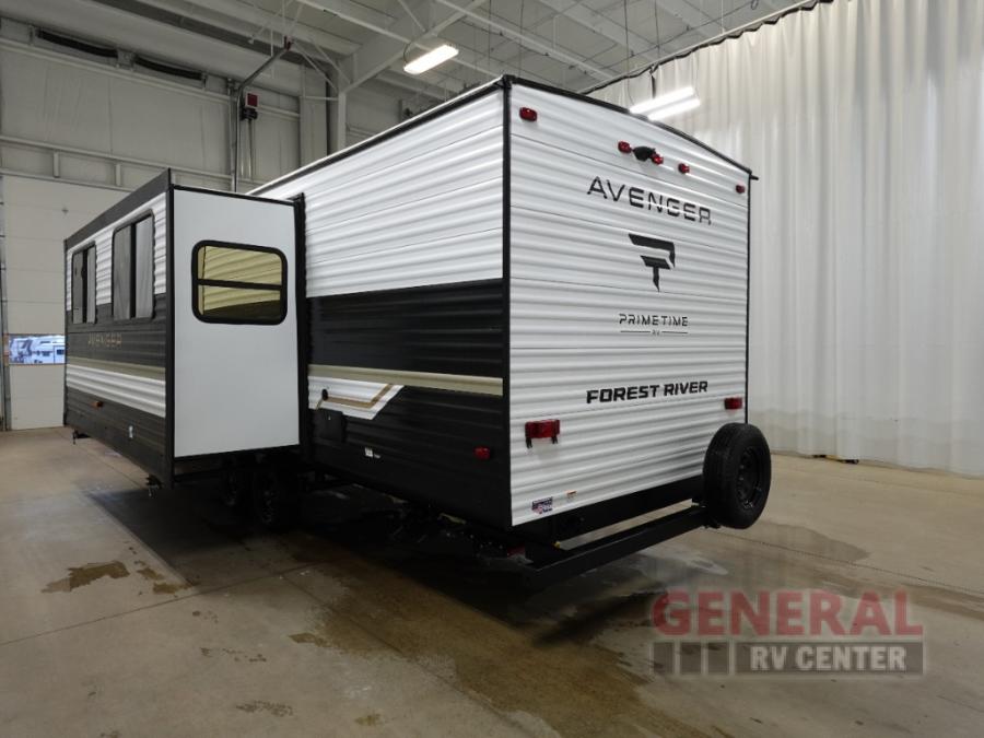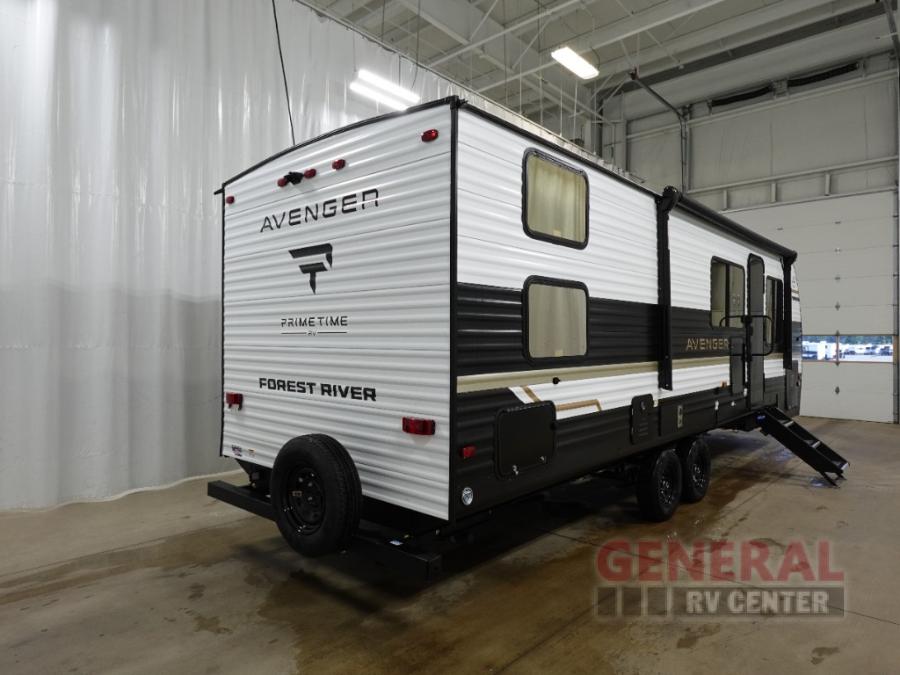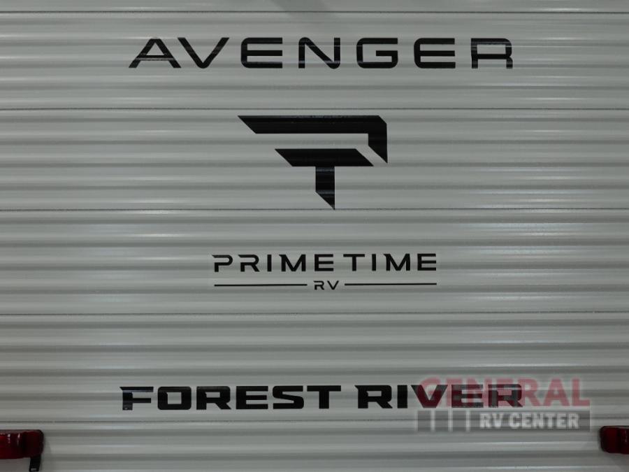With any Avenger travel trailer by Prime Time RV, you will find innovation, a solid build, and comfort at every turn. Each model is built with Tuff Coat on the exterior metal, a fully enclosed underbelly, and a PVC roof membrane to help extend the life of your trailer. You will also find automotive name badging on the exterior, along with an exterior shower, front rail LED light strips, plus an XL padded entry grab handle to name a few conveniences. There are plenty of storage spaces inside, as well as Congoleum flooring and woven PVC marine grade slide out flooring, a designer shower surround, and seamless pressed countertops. You are sure to appreciate the onboard water filtration system, tankless water heater, plus 30K BTU furnace and 15K ducted A/C to help keep you comfortable.