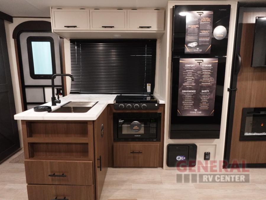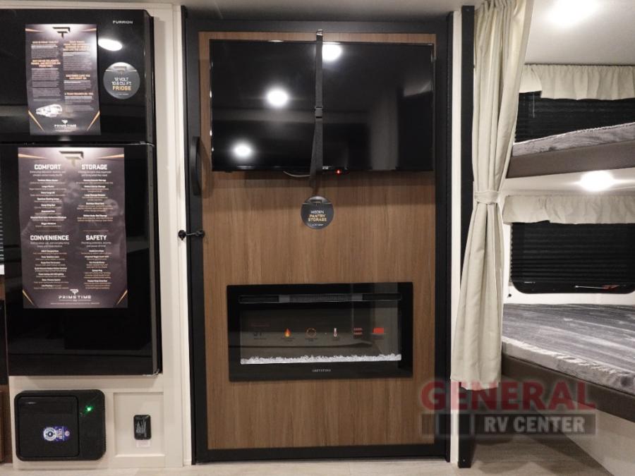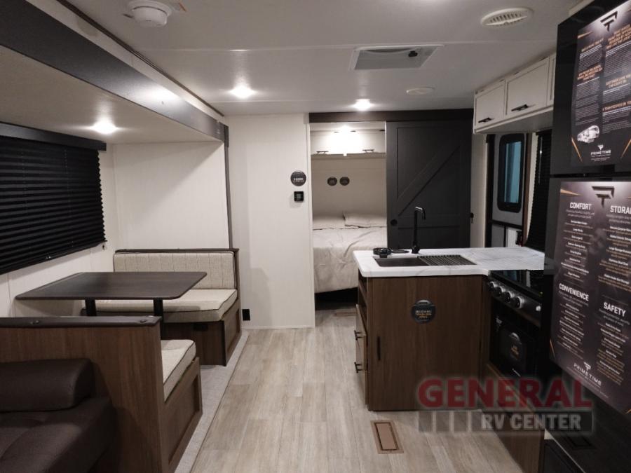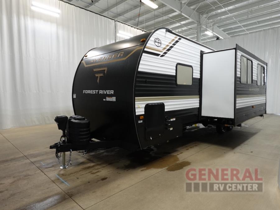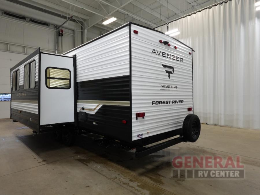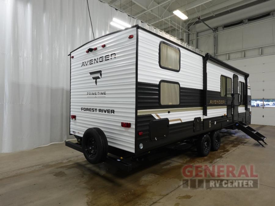 With any Avenger travel trailer by Prime Time RV, you will find innovation, a solid build, and comfort at every turn. Each model is built with Tuff Coat on the exterior metal, a fully enclosed underbelly, and a PVC roof membrane to help extend the life of your trailer. You will also find automotive name badging on the exterior, along with an exterior shower, front rail LED light strips, plus an XL padded entry grab handle to name a few conveniences. There are plenty of storage spaces inside, as well as Congoleum flooring and woven PVC marine grade slide out flooring, a designer shower surround, and seamless pressed countertops. You are sure to appreciate the onboard water filtration system, tankless water heater, plus 30K BTU furnace and 15K ducted A/C to help keep you comfortable.
