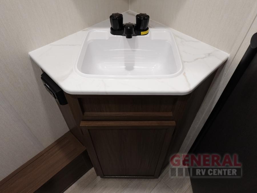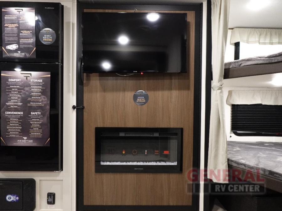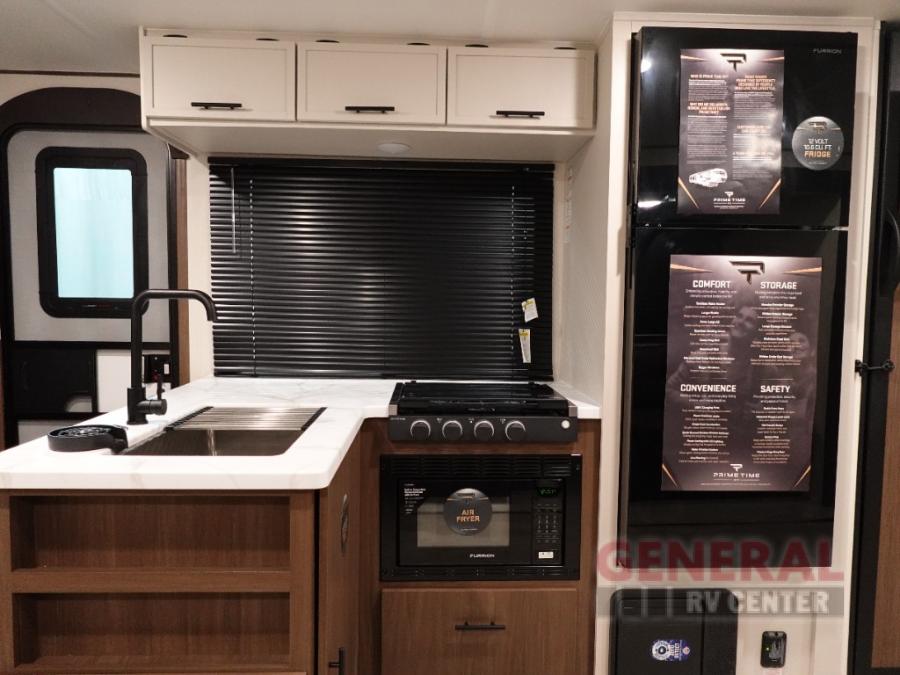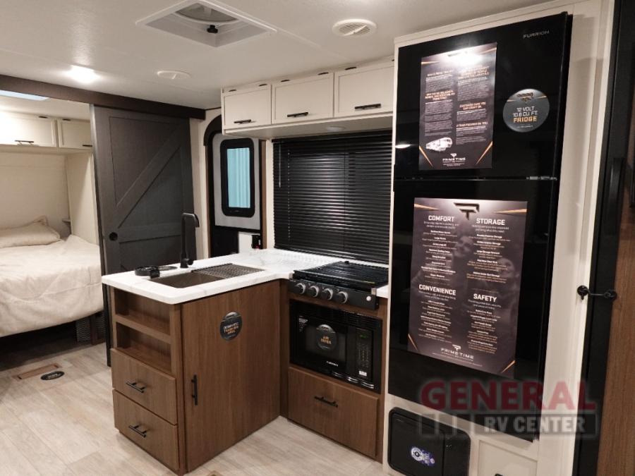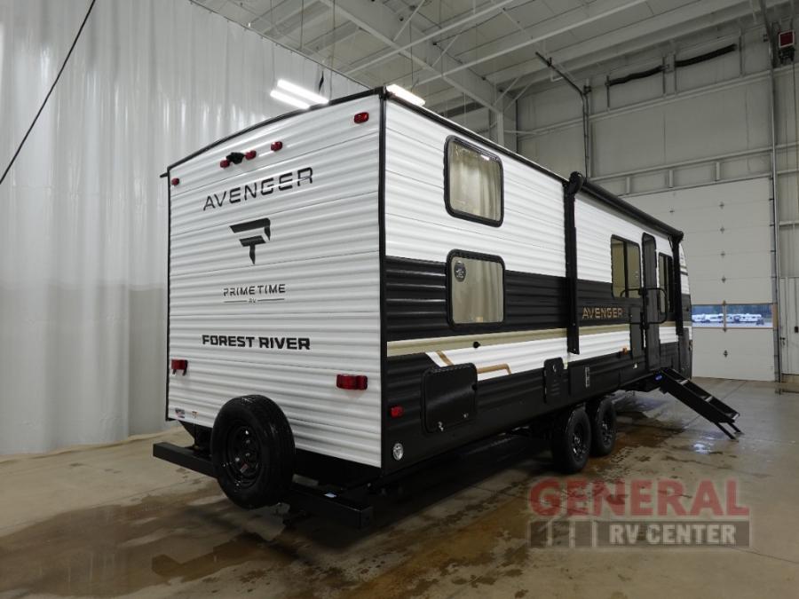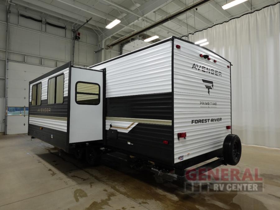 With any Avenger travel trailer by Prime Time RV, you will find innovation, a solid build, and comfort at every turn. Each model is built with Tuff Coat on the exterior metal, a fully enclosed underbelly, and a PVC roof membrane to help extend the life of your trailer. You will also find automotive name badging on the exterior, along with an exterior shower, front rail LED light strips, plus an XL padded entry grab handle to name a few conveniences. There are plenty of storage spaces inside, as well as Congoleum flooring and woven PVC marine grade slide out flooring, a designer shower surround, and seamless pressed countertops. You are sure to appreciate the onboard water filtration system, tankless water heater, plus 30K BTU furnace and 15K ducted A/C to help keep you comfortable.