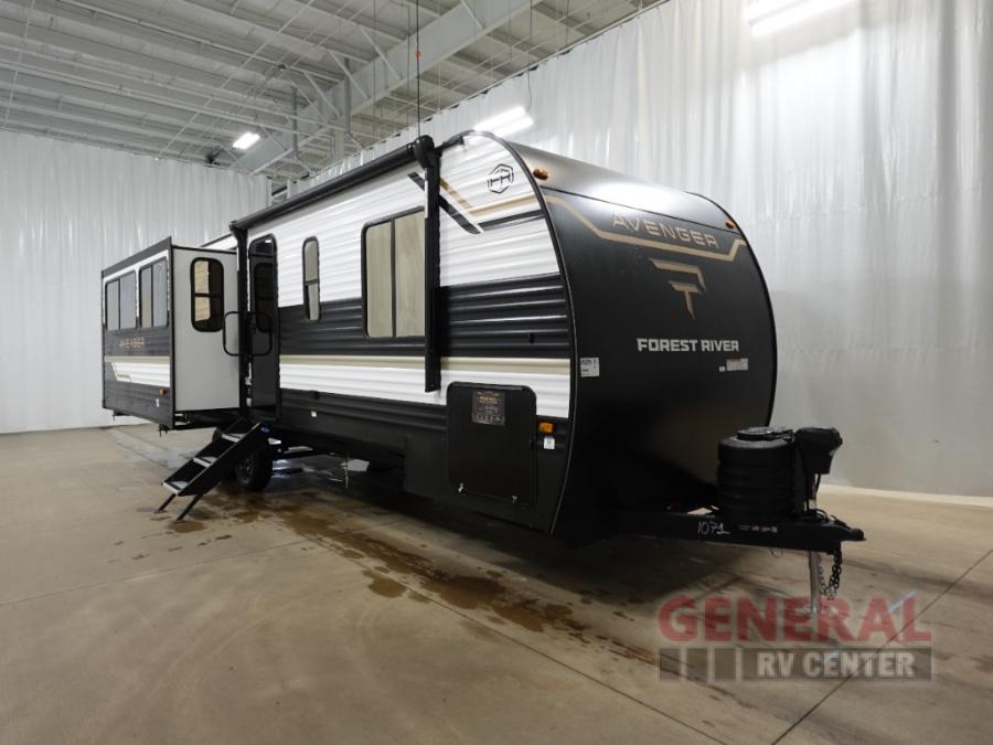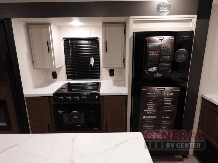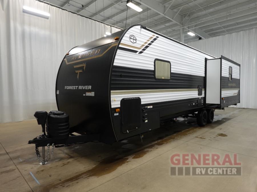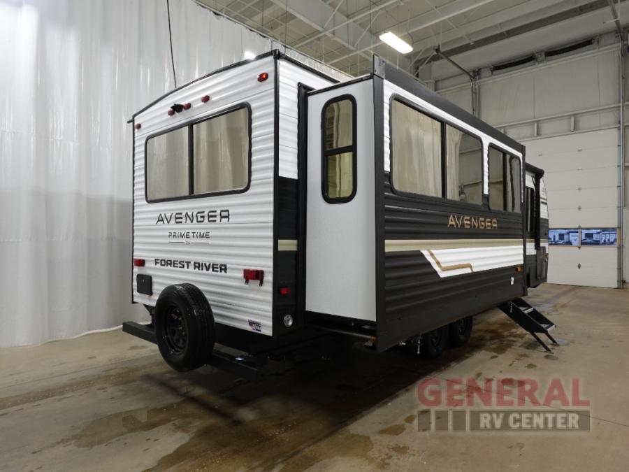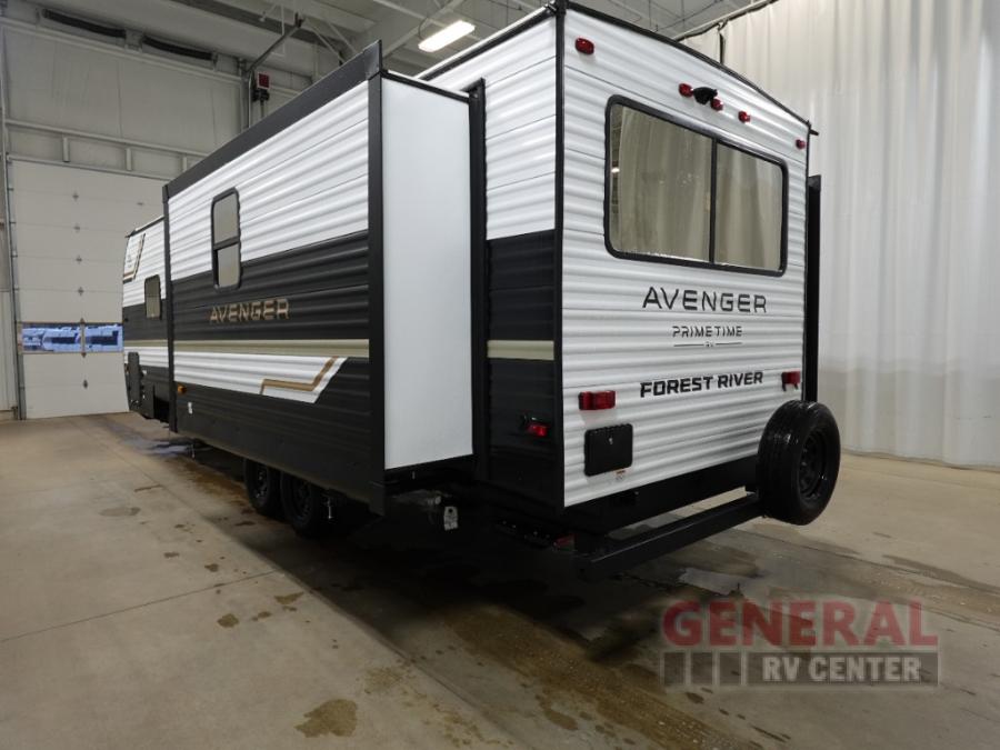 With any Avenger travel trailer by Prime Time RV, you will find innovation, a solid build, and comfort at every turn. Each model is built with Tuff Coat on the exterior metal, a fully enclosed underbelly, and a PVC roof membrane to help extend the life of your trailer. You will also find automotive name badging on the exterior, along with an exterior shower, front rail LED light strips, plus an XL padded entry grab handle to name a few conveniences. There are plenty of storage spaces inside, as well as Congoleum flooring and woven PVC marine grade slide out flooring, a designer shower surround, and seamless pressed countertops. You are sure to appreciate the onboard water filtration system, tankless water heater, plus 30K BTU furnace and 15K ducted A/C to help keep you comfortable.