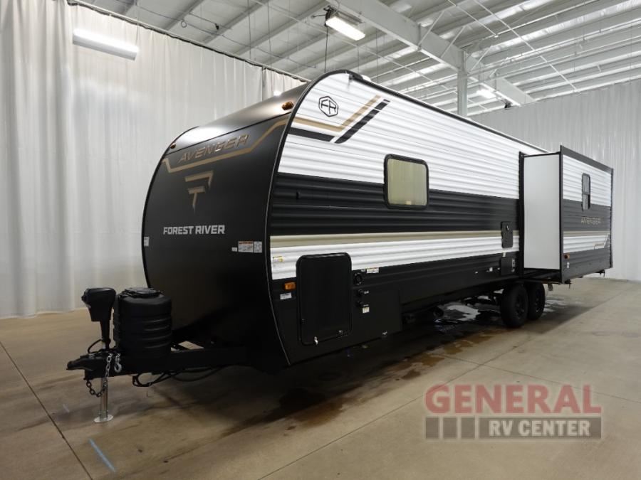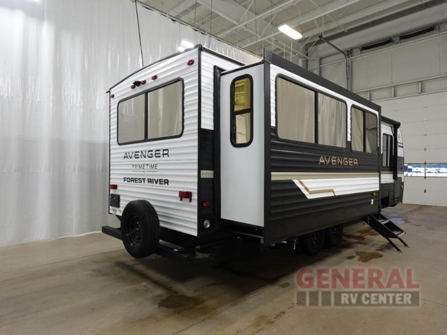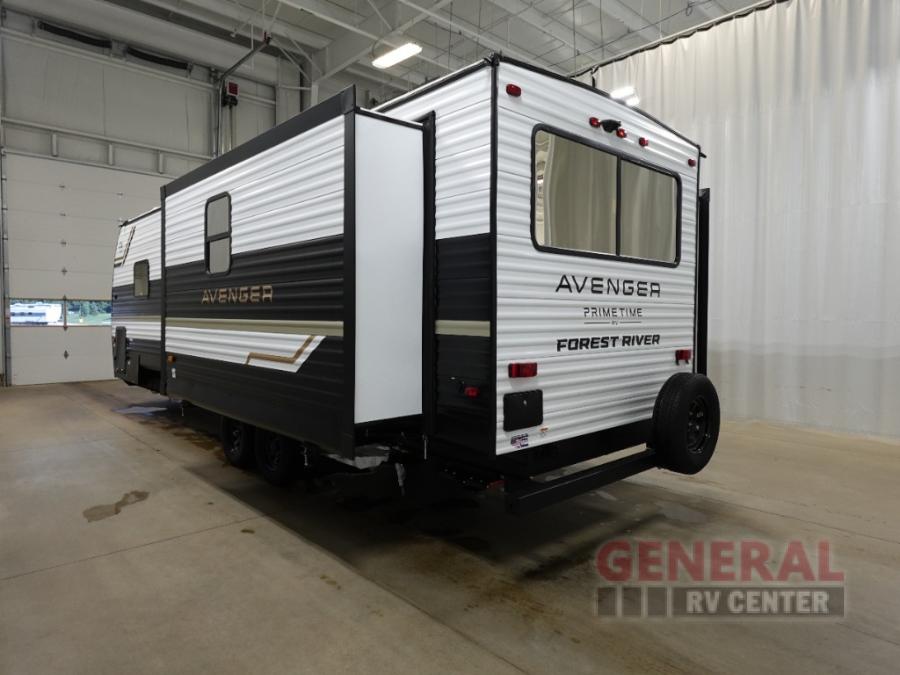 With any Avenger travel trailer by Prime Time RV, you will find innovation, a solid build, and comfort at every turn. Each model is built with Tuff Coat on the exterior metal, a fully enclosed underbelly, and a PVC roof membrane to help extend the life of your trailer. You will also find automotive name badging on the exterior, along with an exterior shower, front rail LED light strips, plus an XL padded entry grab handle to name a few conveniences. There are plenty of storage spaces inside, as well as Congoleum flooring and woven PVC marine grade slide out flooring, a designer shower surround, and seamless pressed countertops. You are sure to appreciate the onboard water filtration system, tankless water heater, plus 30K BTU furnace and 15K ducted A/C to help keep you comfortable.