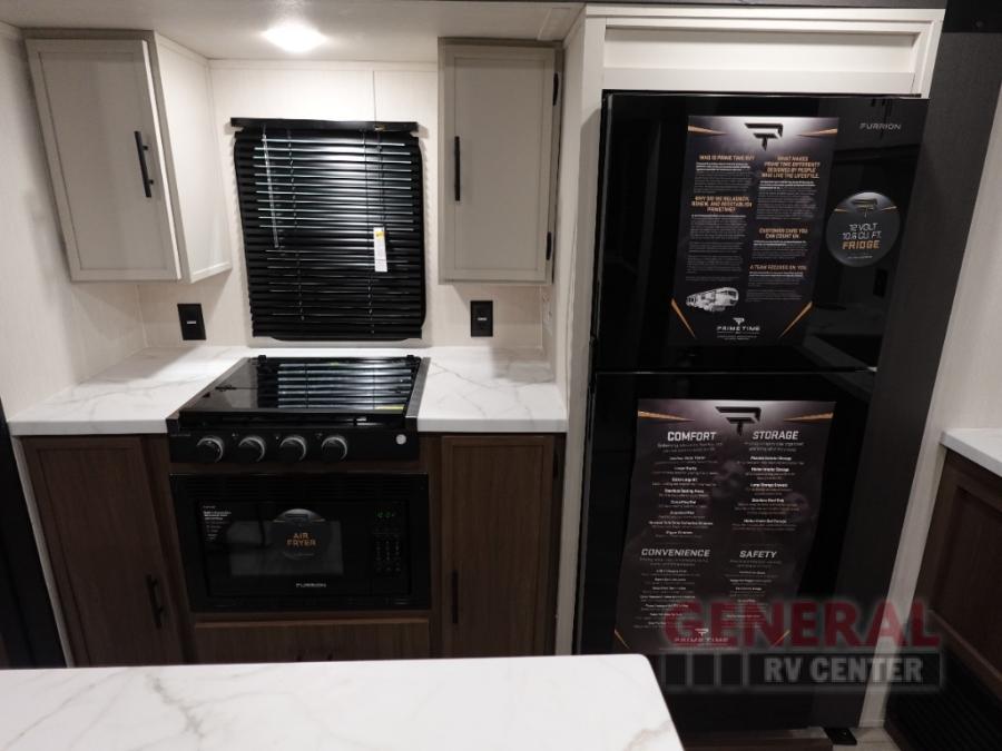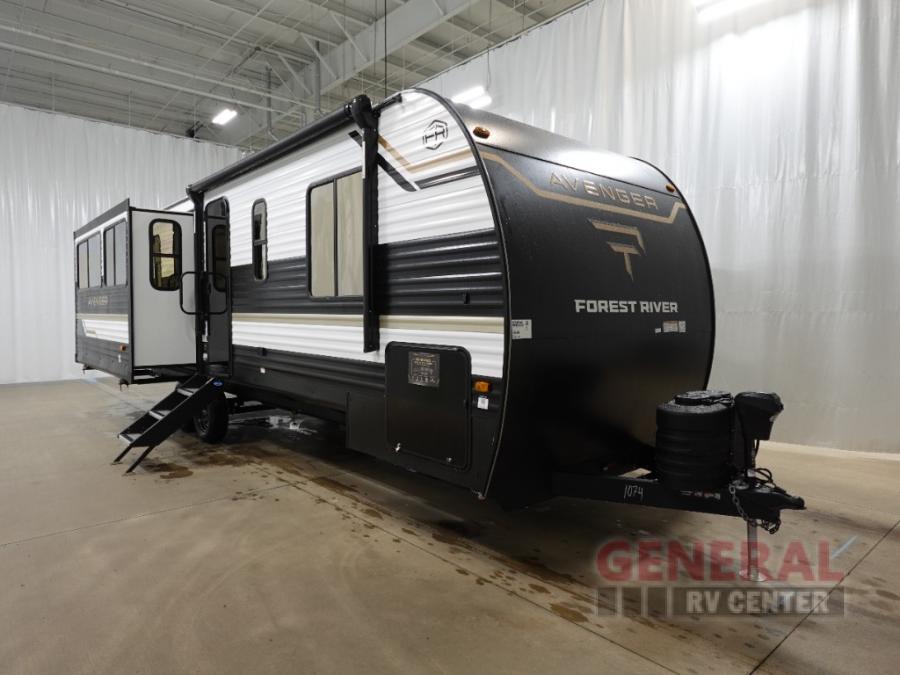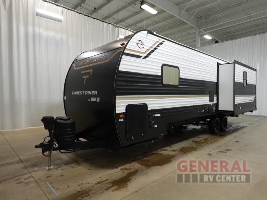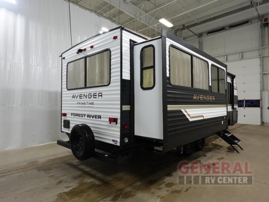 With any Avenger travel trailer by Prime Time RV, you will find innovation, a solid build, and comfort at every turn. Each model is built with Tuff Coat on the exterior metal, a fully enclosed underbelly, and a PVC roof membrane to help extend the life of your trailer. You will also find automotive name badging on the exterior, along with an exterior shower, front rail LED light strips, plus an XL padded entry grab handle to name a few conveniences. There are plenty of storage spaces inside, as well as Congoleum flooring and woven PVC marine grade slide out flooring, a designer shower surround, and seamless pressed countertops. You are sure to appreciate the onboard water filtration system, tankless water heater, plus 30K BTU furnace and 15K ducted A/C to help keep you comfortable.