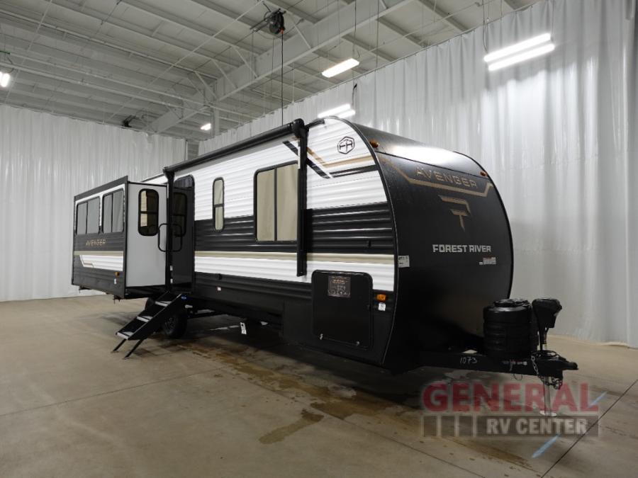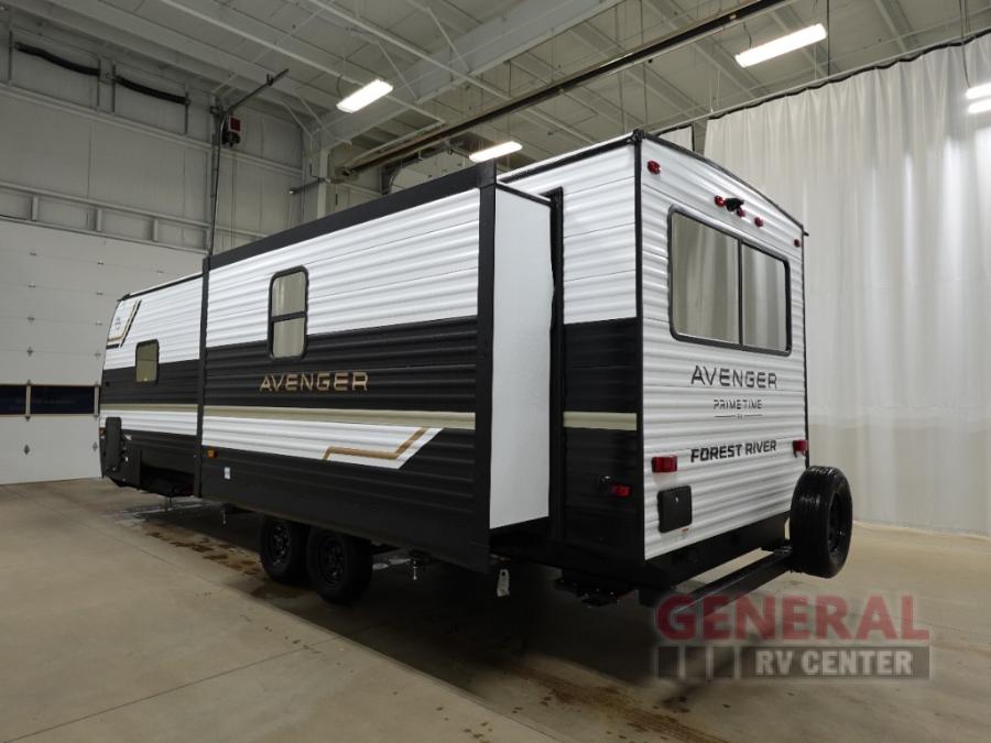 With any Avenger travel trailer by Prime Time RV, you will find innovation, a solid build, and comfort at every turn. Each model is built with Tuff Coat on the exterior metal, a fully enclosed underbelly, and a PVC roof membrane to help extend the life of your trailer. You will also find automotive name badging on the exterior, along with an exterior shower, front rail LED light strips, plus an XL padded entry grab handle to name a few conveniences. There are plenty of storage spaces inside, as well as Congoleum flooring and woven PVC marine grade slide out flooring, a designer shower surround, and seamless pressed countertops. You are sure to appreciate the onboard water filtration system, tankless water heater, plus 30K BTU furnace and 15K ducted A/C to help keep you comfortable.