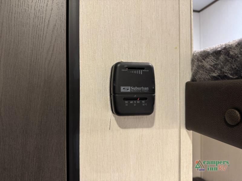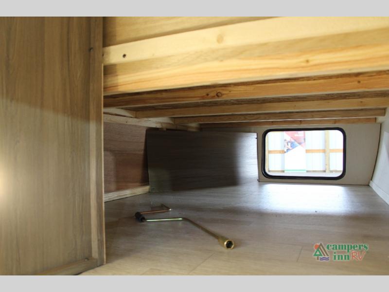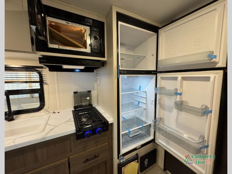 Go hiking, biking or exploring for new places when you have this trailer at the campgrounds! You will find sleeping for five between the rear corner bunk beds, and the front bed with a nightstand for your cellphones and such. And one more can sleep on the dinette slide. You'll be delighted with the kitchen skylight that gives natural lighting as you cook a meal. The LED-lit power awning provides a protected outdoor living area as you visit or make s'mores around the campfire.