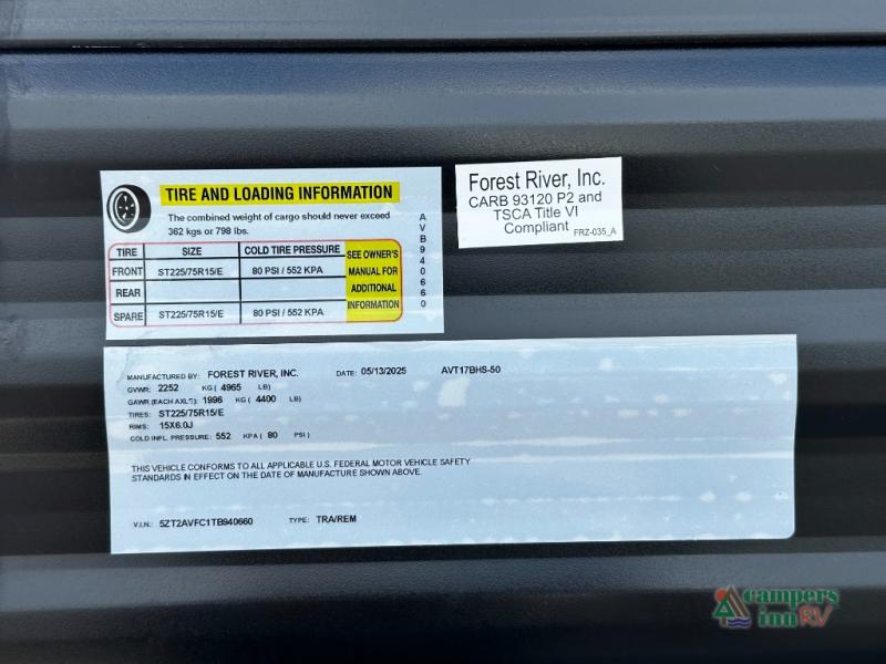 Prime Time Avenger LT travel trailer 17BHS highlights: