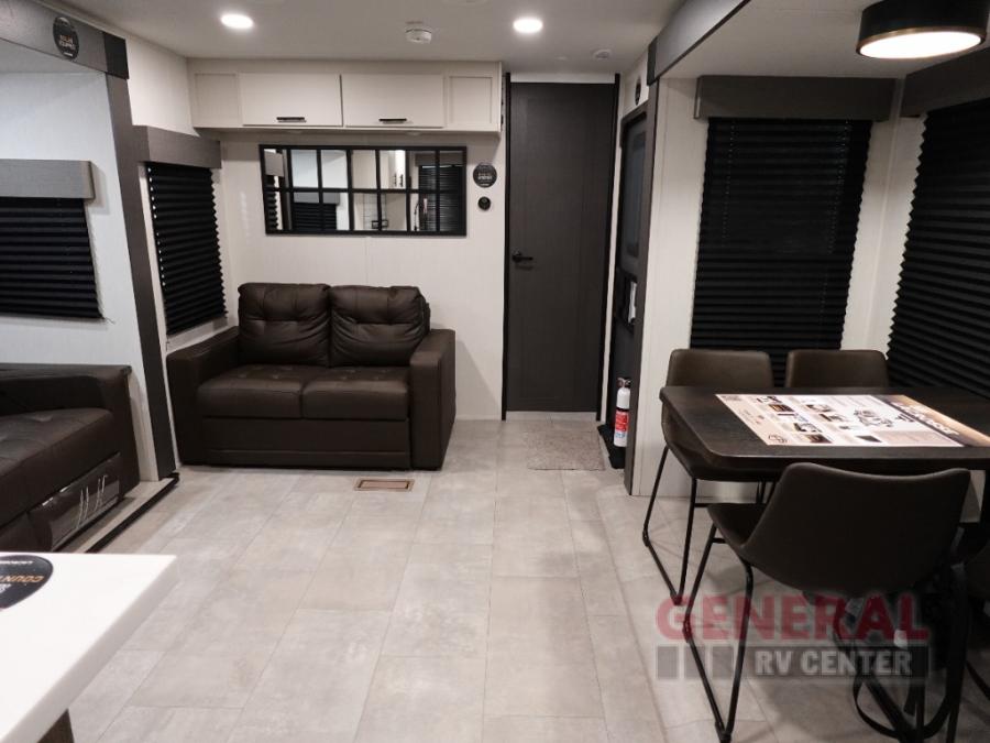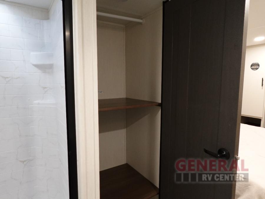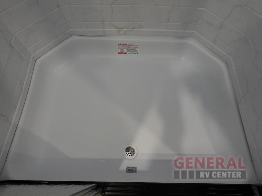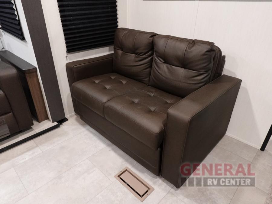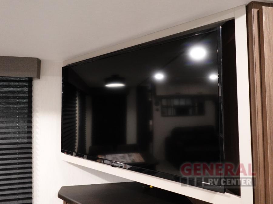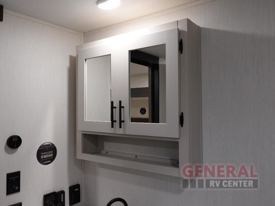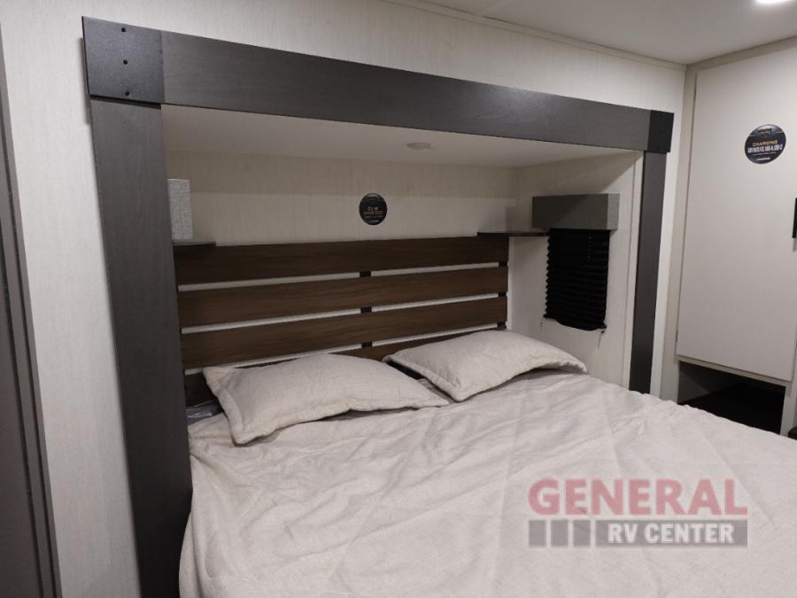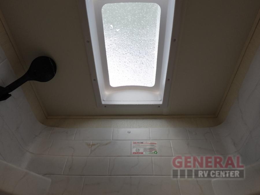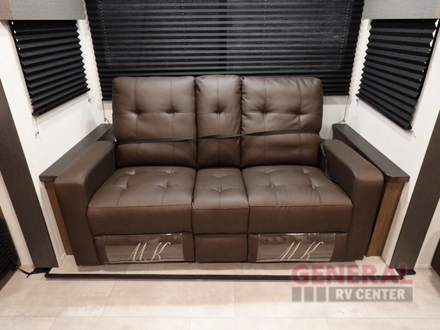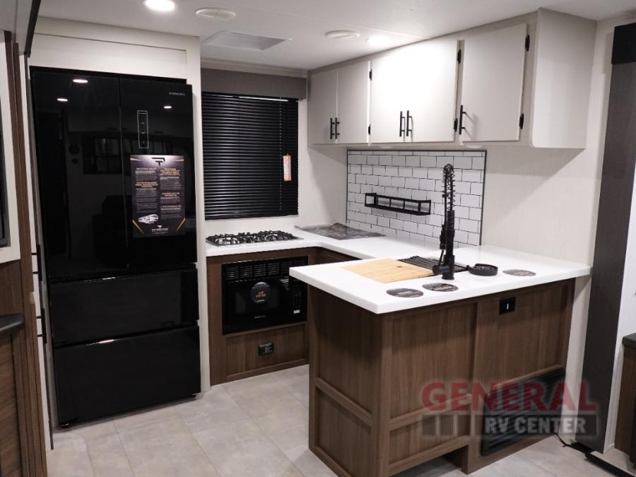 You will be ultra impressed by this LaCrosse travel trailer! First, the interior is made to feel just like your own home with its theater seating, hide-a-bed sofa, free-standing table with chairs, and entertainment center with 50" LED TV and fireplace. Second, you'll find even more residential comfort in the rear kitchen that has a three burner cooktop, a 30" microwave oven, and a 16.2 cubic foot 12V refrigerator. And lastly, the walk-through bathroom has two doors on either side with one of those doors leading directly into the front private bedroom, so you know you'll enjoy great comfort in this space each night. There is also a bedroom bench at the front of this trailer which gives you an enjoyable place to relax as you take in the views from the front windshield