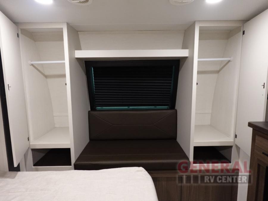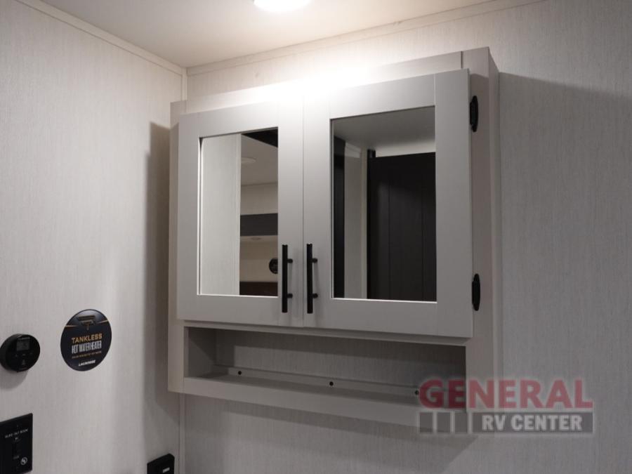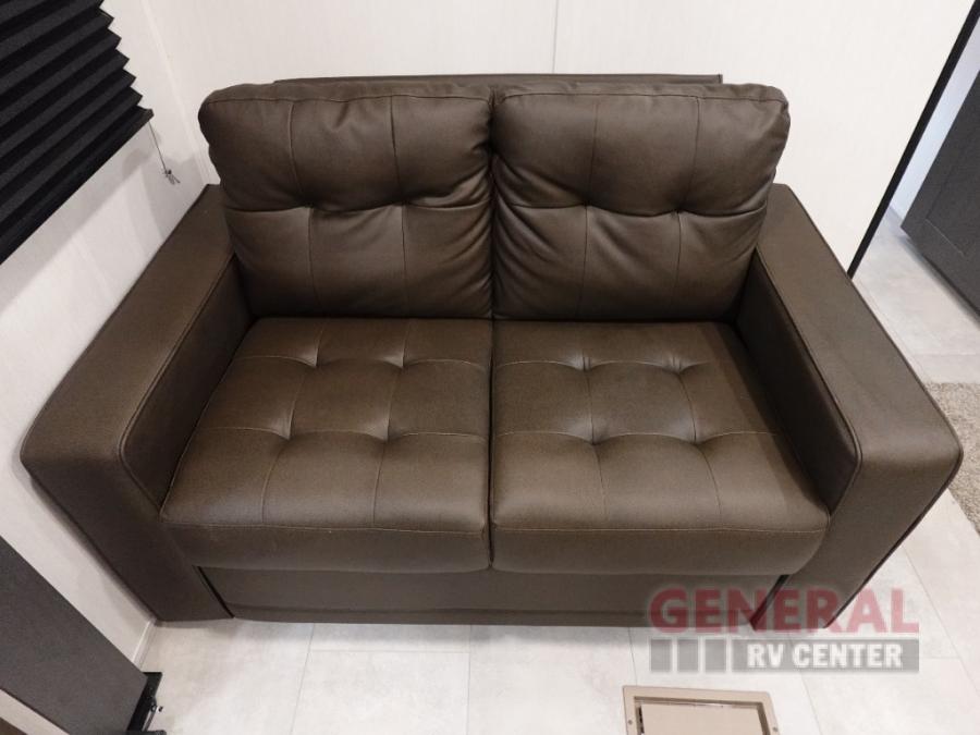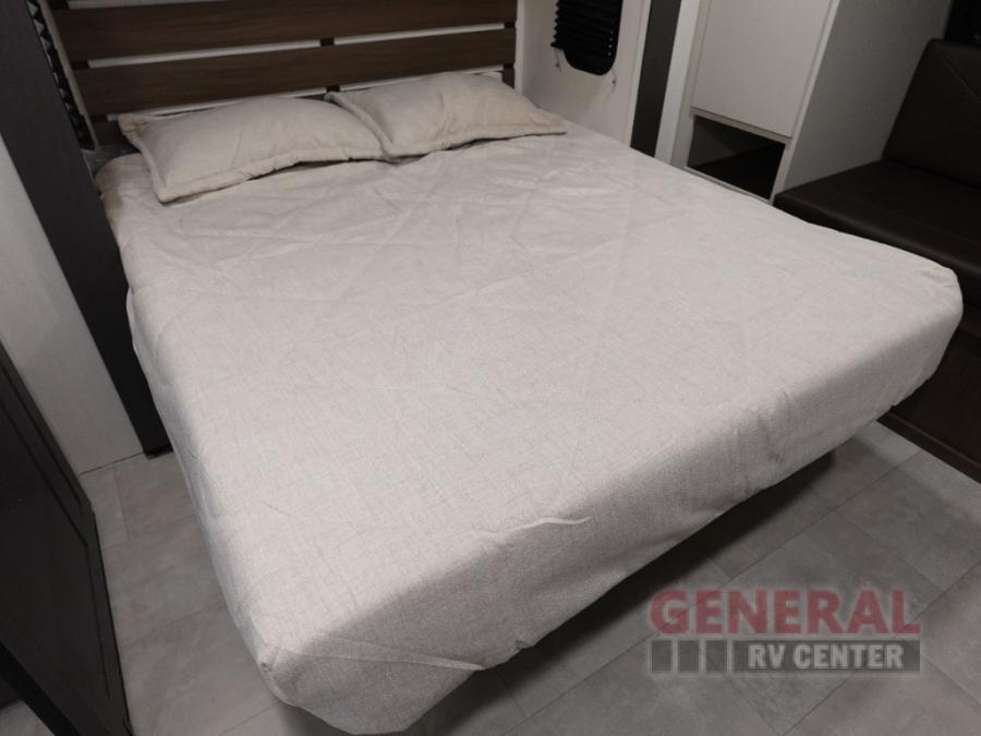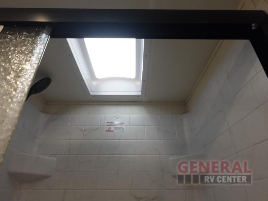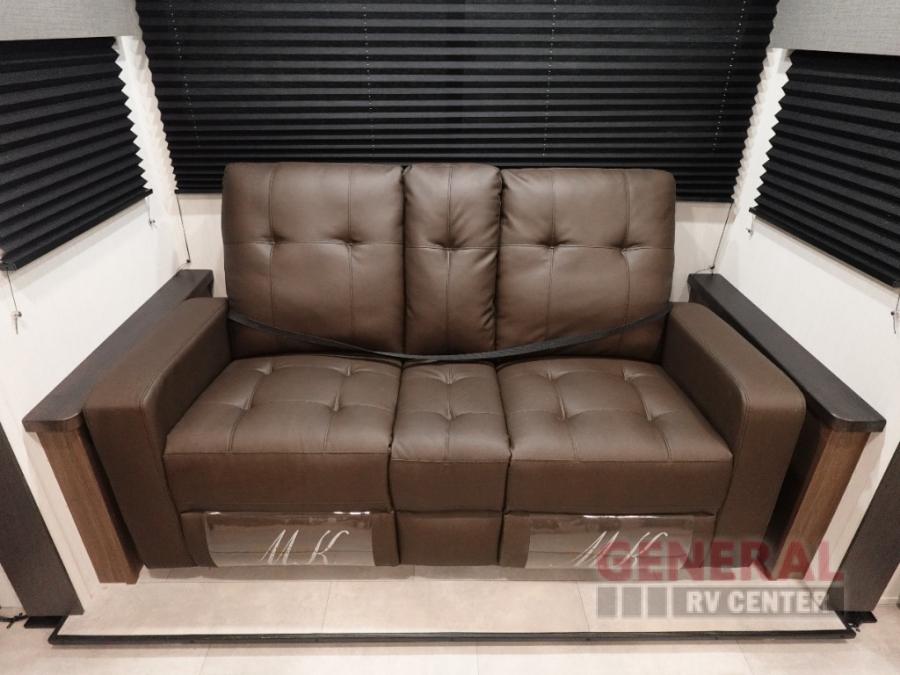 You will be ultra impressed by this LaCrosse travel trailer! First, the interior is made to feel just like your own home with its theater seating, hide-a-bed sofa, free-standing table with chairs, and entertainment center with 50" LED TV and fireplace. Second, you'll find even more residential comfort in the rear kitchen that has a three burner cooktop, a 30" microwave oven, and a 16.2 cubic foot 12V refrigerator. And lastly, the walk-through bathroom has two doors on either side with one of those doors leading directly into the front private bedroom, so you know you'll enjoy great comfort in this space each night. There is also a bedroom bench at the front of this trailer which gives you an enjoyable place to relax as you take in the views from the front windshield