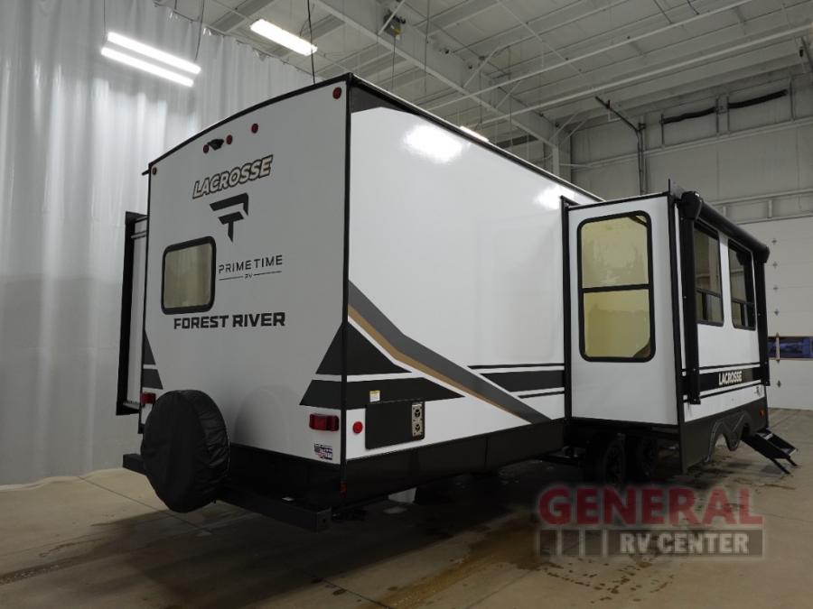 If you used to think that you had to spend a fortune to get a luxury RV, think again because the Prime Time LaCrosse travel trailer proves that you can combine luxury with value! The LaCrosse features premium solid wood core cabinetry, solid surface countertops, an 82" interior ceiling height, motion-sensor LED lighting, and USB ports. On the exterior, the fully enclosed underbelly protects your unit so that you can adventure during colder weather, and the power awning w/ LED lights is certainly a valuable feature that allows you to sit outside underneath some shade on a sunny afternoon. Come choose your model today!